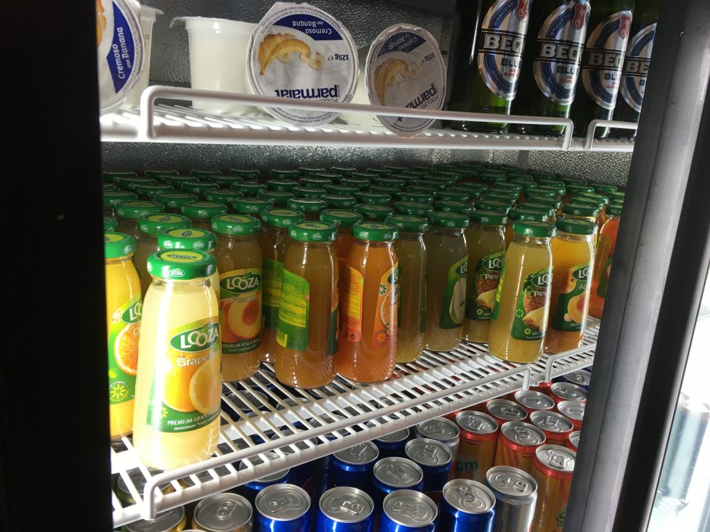 Das gesamte Angebot an Speisen und Getränke wird an der Bar, die von einem Barkeeper bedient wird, angeboten. Neben alkoholfreien Getränken wie Softdrinks, Säften und Wasser werden auch Kaffeespezialitäten vom Barkeeper frisch zubereitet.