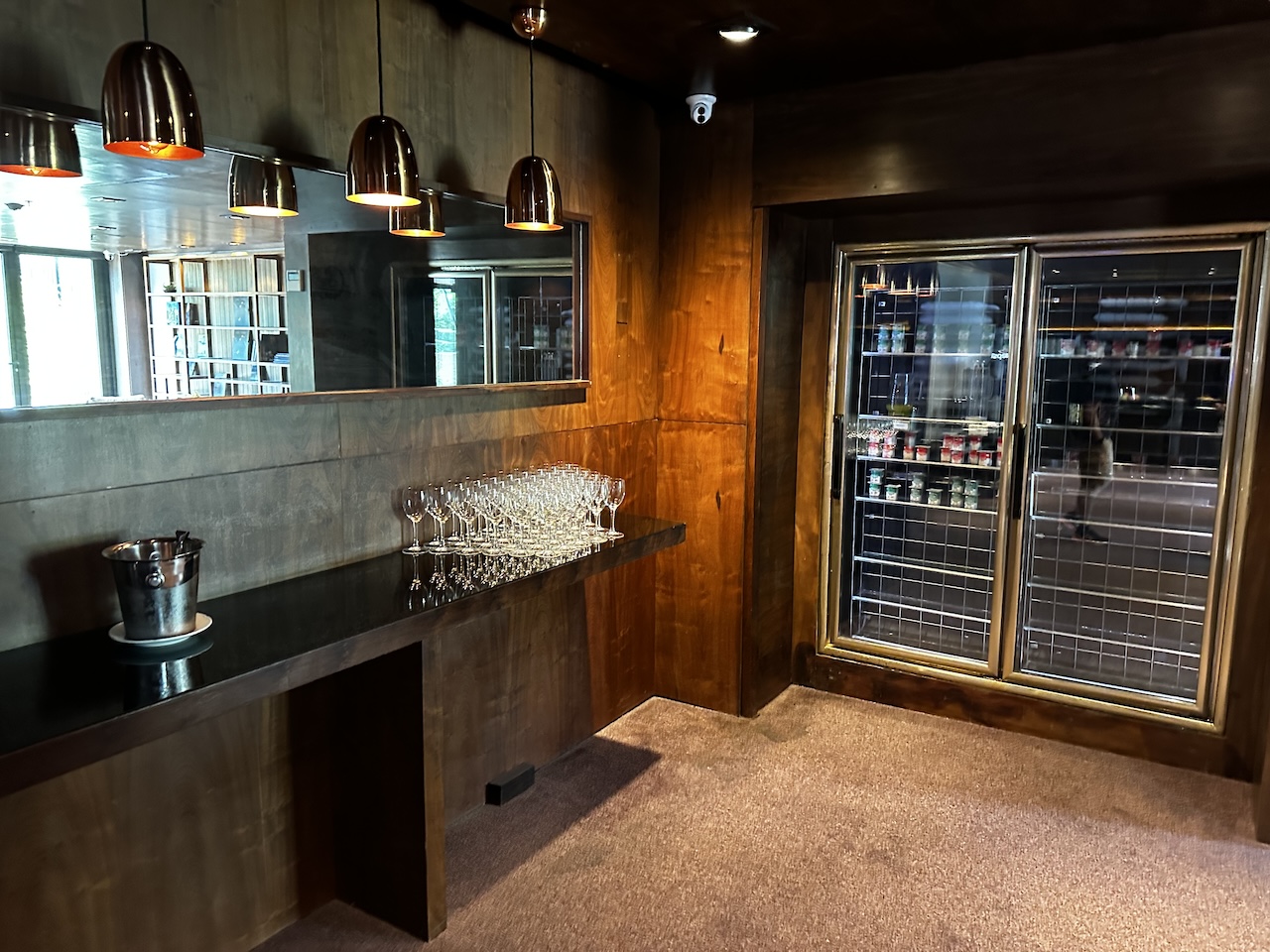 Gäste können dort auch eine Bar nutzen, es gibt Duschen und eine Sauna.