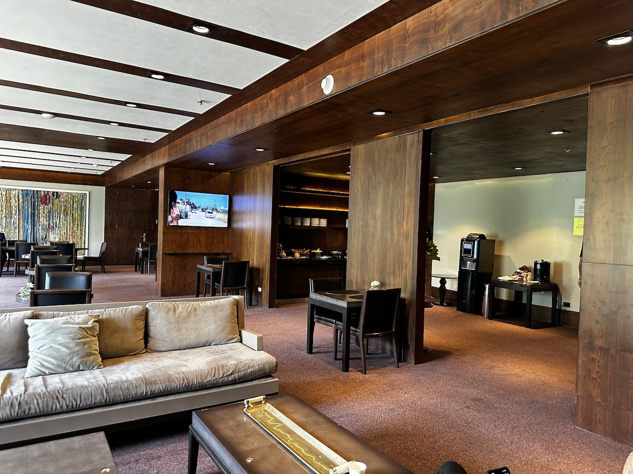 Die Lounge ist relativ groß und war auch zur Stoßzeit entgegen unserer Erwartung nicht überfüllt.