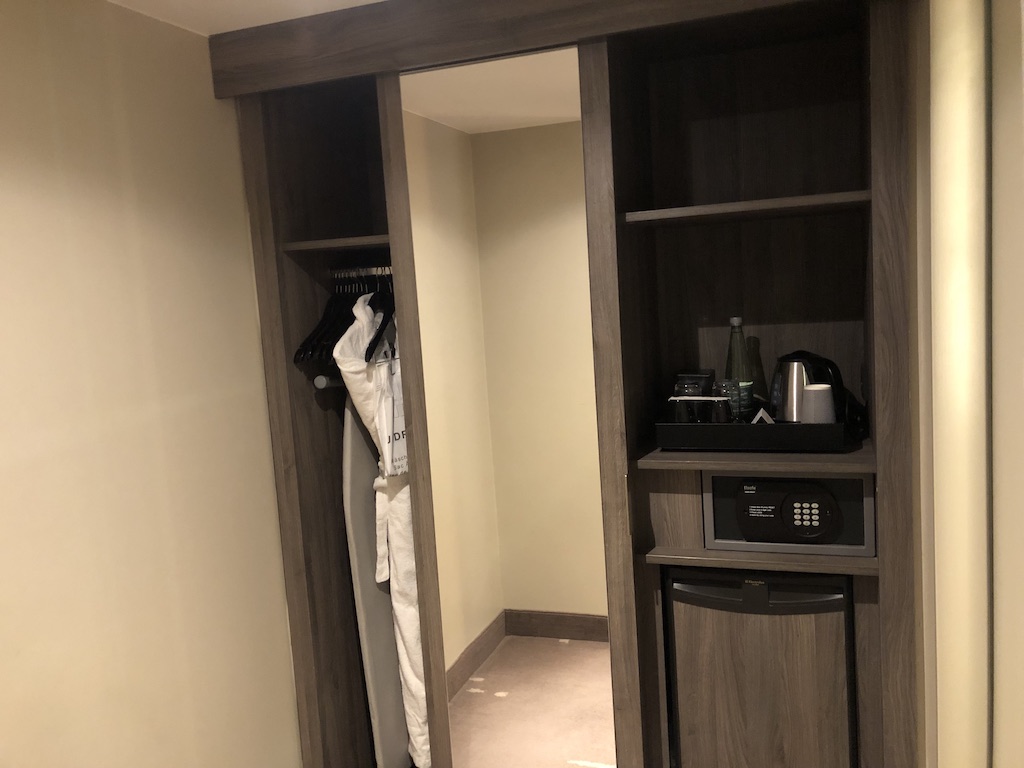 Das Bad war ebenfalls geräumiger, die Annehmlichkeiten wie Kaffee, Tee, Kühlschrank, Fernseher usw. waren identisch.