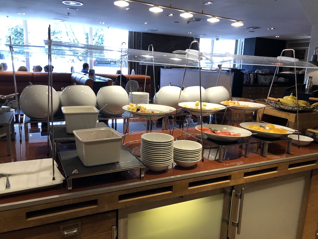 Im Restaurant gab es Samstag und Sonntag Frühstück bis 12 Uhr mittag, das Buffet war üppig. Normalerweise kann man dort auch das Abendessen einnehmen, das Lokal ist jedoch derzeit abends (noch) geschlossen.