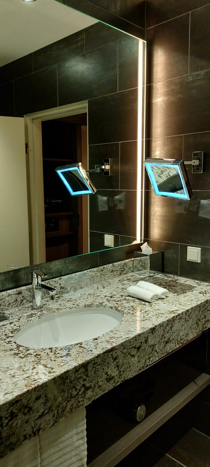 Ich habe zwei Zimmer reserviert, da ich mit den Schwiegereltern unterwegs war. Vor der Anreise kam die Check-In Einladung in der App, ein Tag vor der Ankunft wurde eines der Zimmer auf eine Studio Suite upgegraded. Im Hotel angekommen wurden wir freundlich begrüßt, um 12 Uhr mittags war bereits eines der Zimmer bezugsfertig- perfekt um Gepäck und Garderobe abzulegen.
