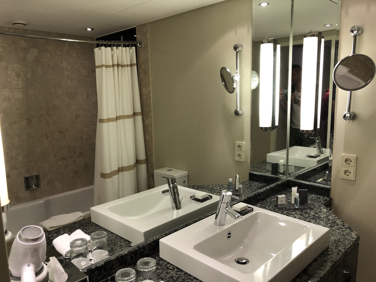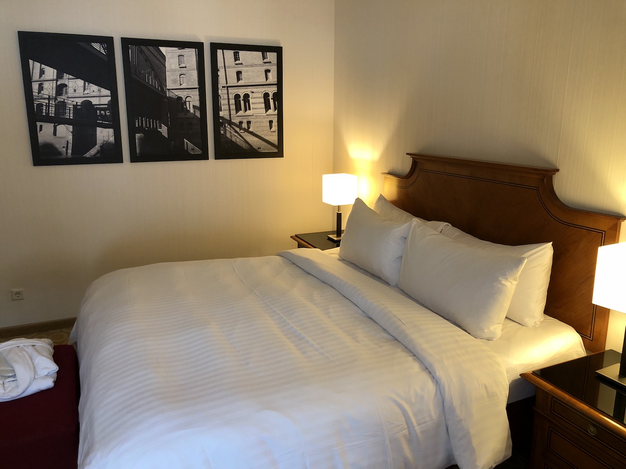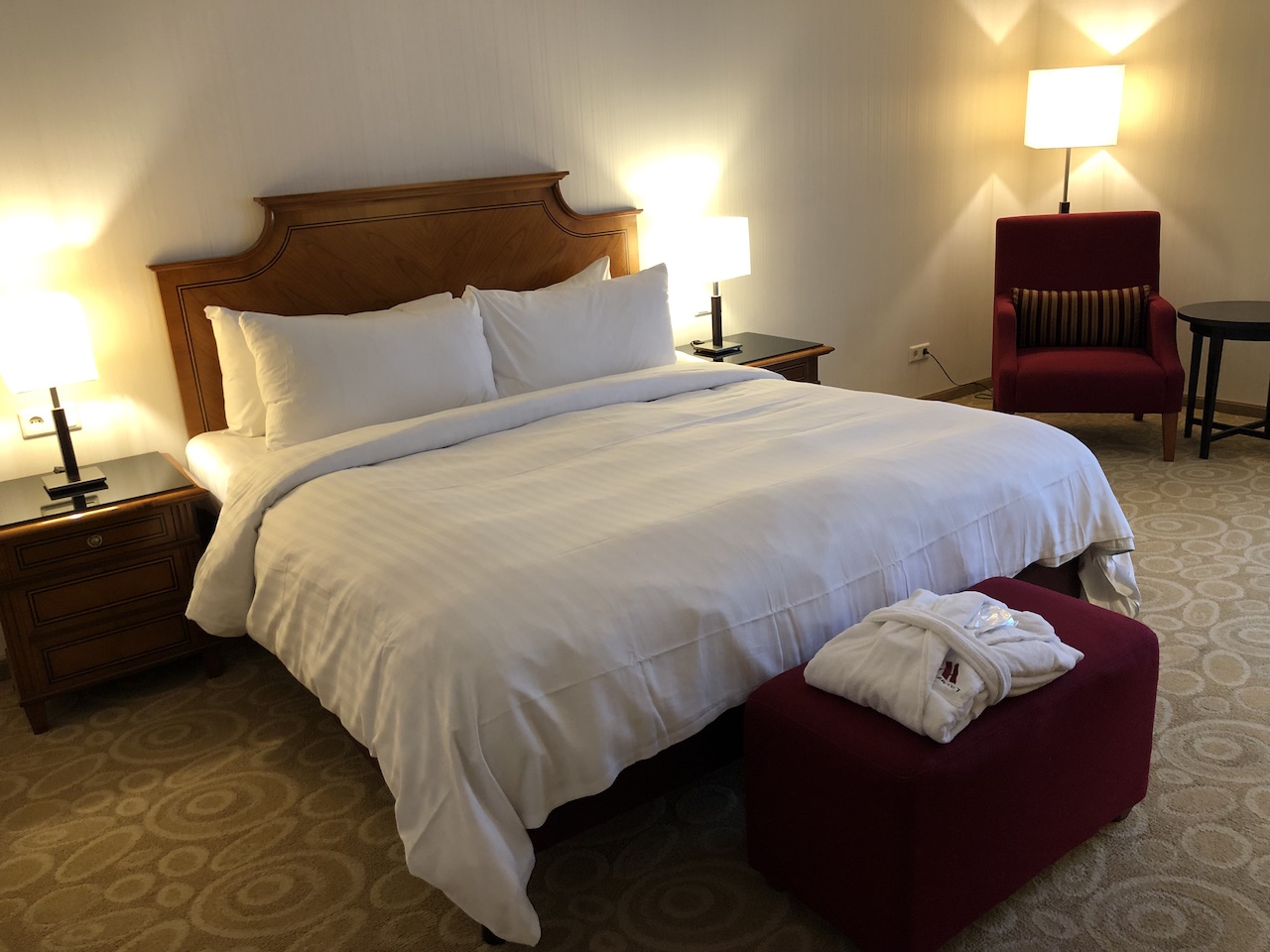 Die Lage überzeugt, beim Preis hatte ich durch die rechtzeitige Buchung etwas Glück. Das Marriott liegt sehr zentral, ist aber an vielen Terminen ziemlich teuer. Viele Bereiche sind schon ordentlich in die Jahre gekommen, dazu gehören leider auch die Zimmer.