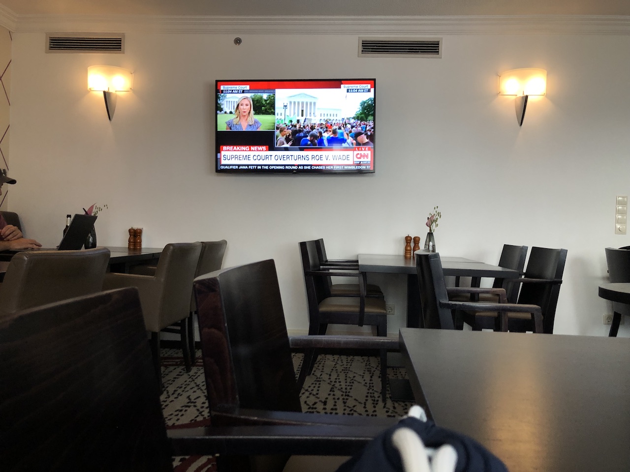 Der Raum ist etwas klein und füllt sich insbesondere am Abend schnell. Es gibt ein kleines Business Center, auf dem Fernseher laufen US-Nachrichtensender.