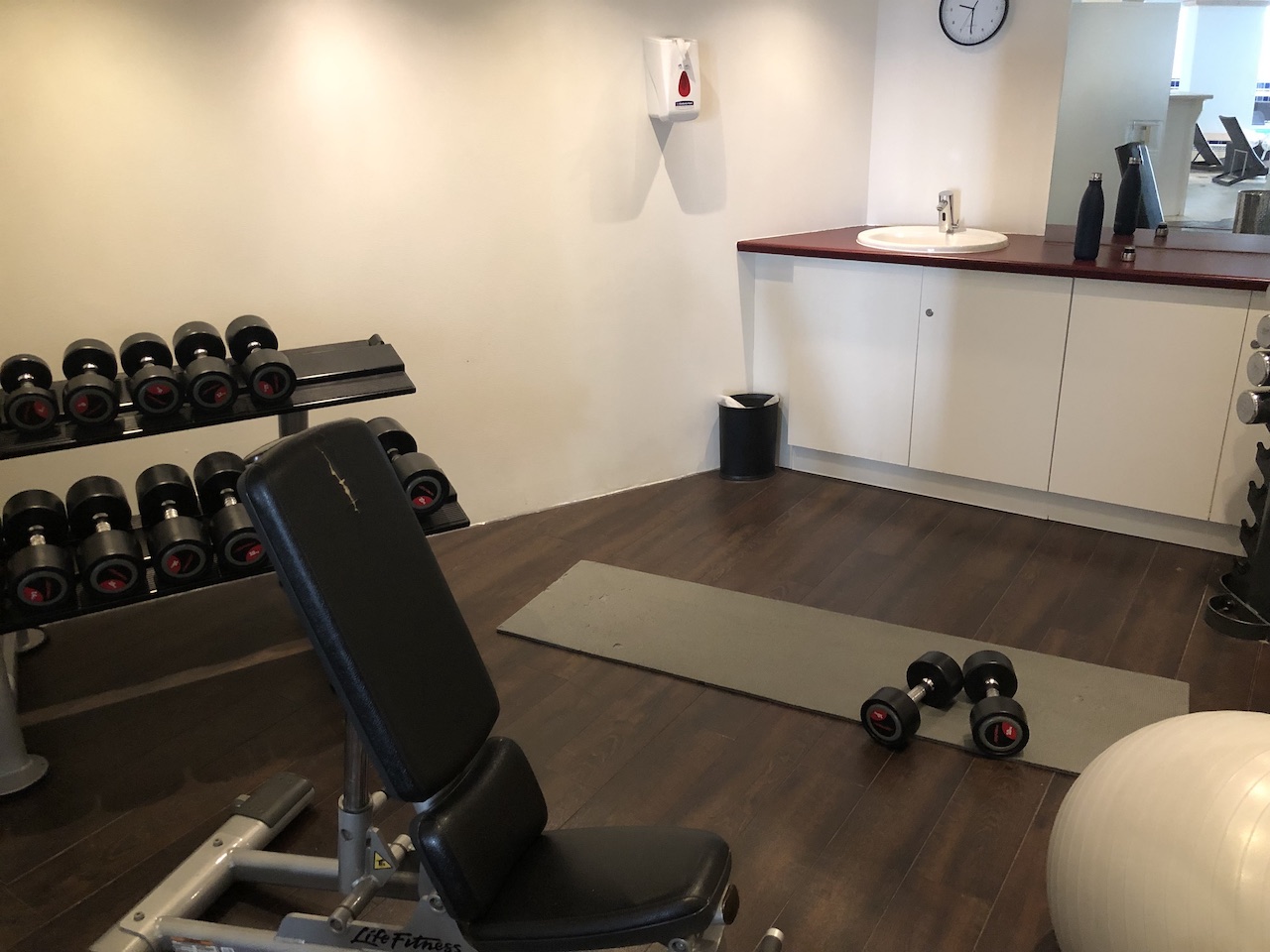 In den Umkleiden war eine Sauna, der Fitnessbereich ist in zwei kleineren Räumen untergebracht.