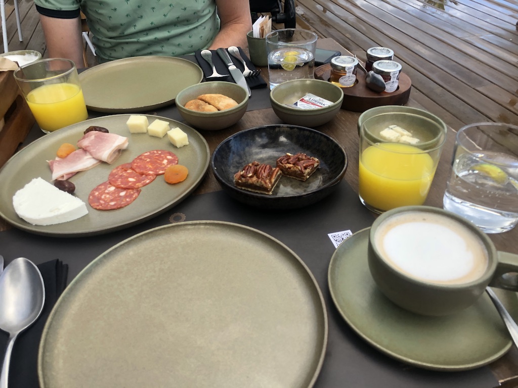 Die Menüs kann man auf dem Handy abrufen, darunter auch eine Weinkarte. Dort sind überwiegend lokale Tropfen zu finden, die Preise sind moderat. Frühstück wird bis um 11:30 a la Carte serviert, es wurde um eine Reservierung gebeten um Stoßzeiten etwas auszudehnen. Die kontinentale Frühstücks-Variante wird übrigens ohne Aufpreis auch auf das Zimmer gebracht.