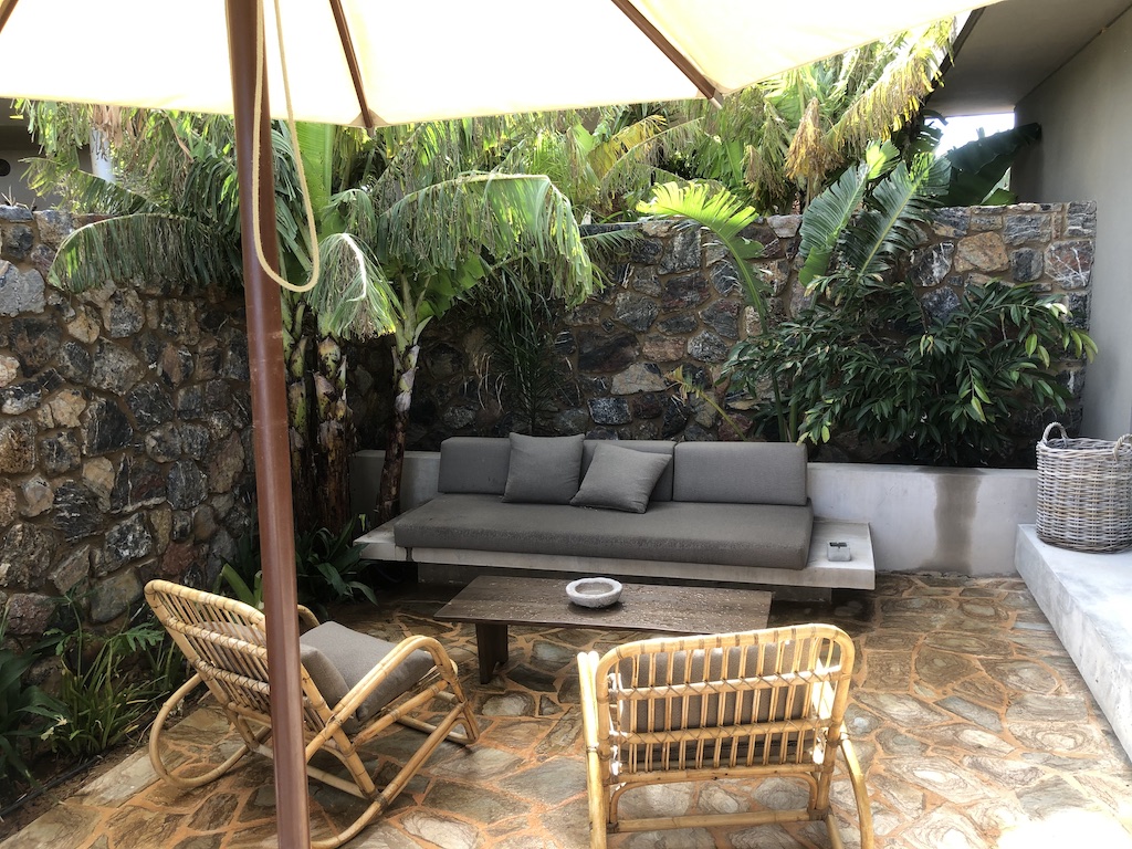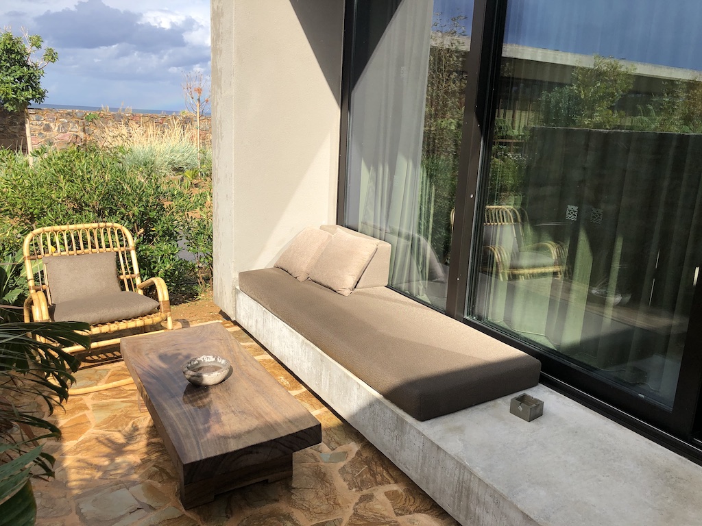Highlight war die Terrasse mit dem eigenen Pool, in unserem Fall lag diese sehr geschützt. Dort waren neben zwei Liegen auch ein Sofa mit Tisch, alles mit Blick über die Anlage und auf das Meer.