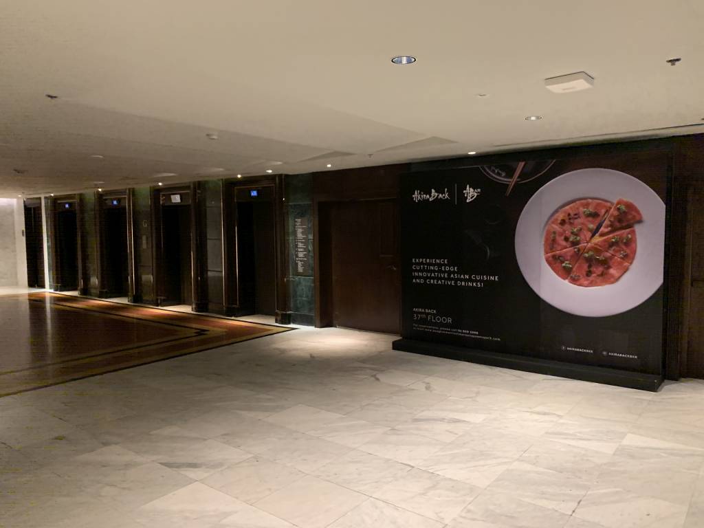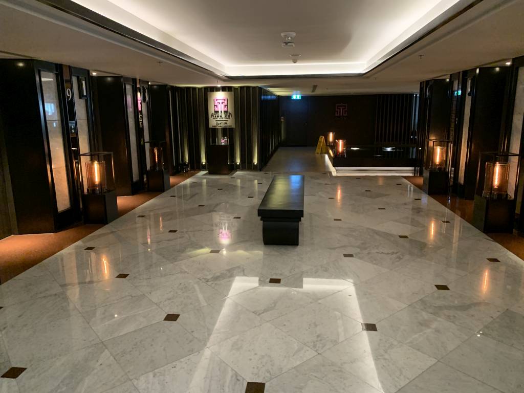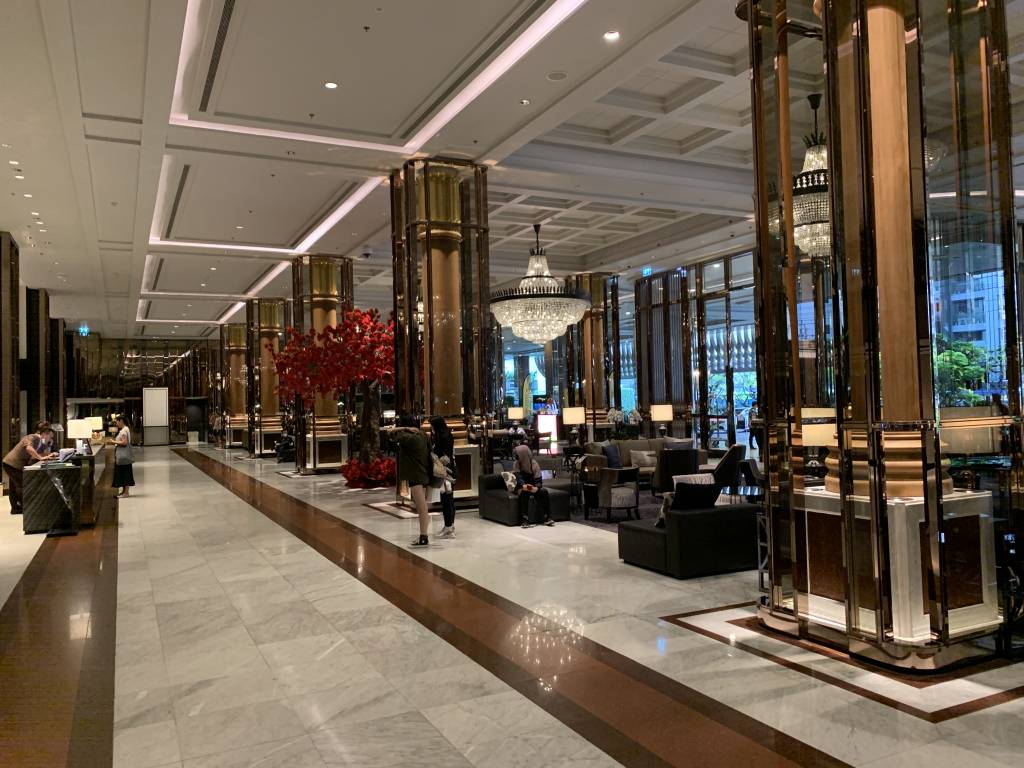Zum Check-Out schnappten wir uns Gepäck und fuhren runter in die südliche Lounge. Dort konnten wir ohne Wartezeit die Rechnung begleichen und unsere Schlüsselkarten abgeben. Als nette Geste wurde uns währenddessen sogar noch ein Kaffee angeboten. Wir mussten allerdings schnell weiter. Freundlich verabschiedet gingen wir daher wieder Richtung Fahrstuhl und bestellten uns in der Lobby ein Grab.