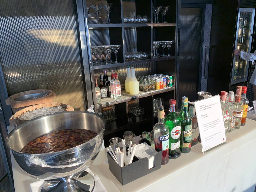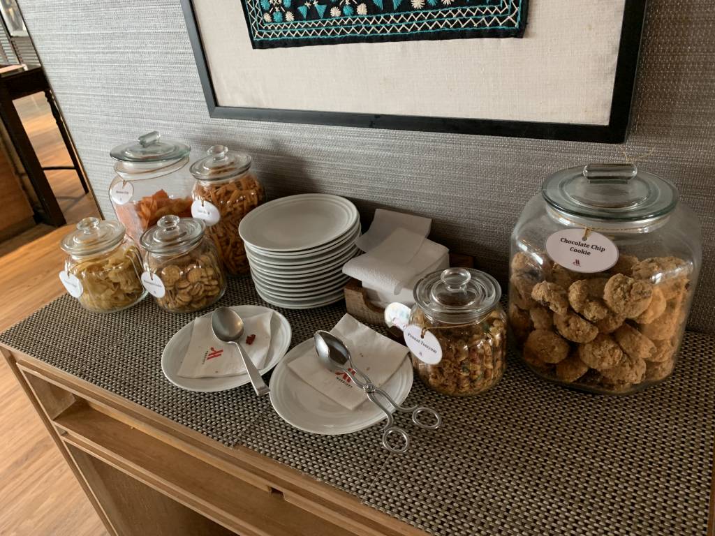Frühstück wird in der Lounge bis 10:30 Uhr serviert und bis zur Happy Hour stehen kleinere Snacks, Softdrinks und Kaffee zur Verfügung. Die Happy Hour mit alkoholischen Getränken und einem umfangreichen Büffet findet dann von 17:30 bis 21:30 Uhr statt. Ab dem 1. Februar 2020 verschob das Marriott Queens Park das Ende der Cocktail Hour von 20:30 auf 21:30 Uhr. Eine Stunde mehr Bier, Wein, Spirituosen und Cocktails. Zu beachten gilt, dass das Büffet nur bis 19:30 Uhr geöffnet ist, danach stehen noch bis 21:30 Uhr Desserts zur Verfügung.
