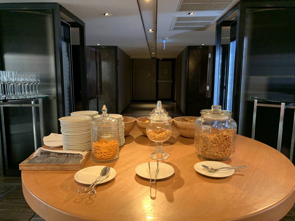 Die Lounges bieten wirklich viele Sitzgelegenheiten. Entweder im Großraum oder wer es mehr privat mag, auch in kleineren separierten Bereichen. Trotz der hohen Kapazität, war die Lounge im Süd-Turm zu jeder Cocktail Hour extrem gut ausgelastet. Auf der kleinen Terrasse mit etwa sieben bis acht Tischen haben wir jedoch an jedem Abend ohne Probleme einen Platz gefunden.