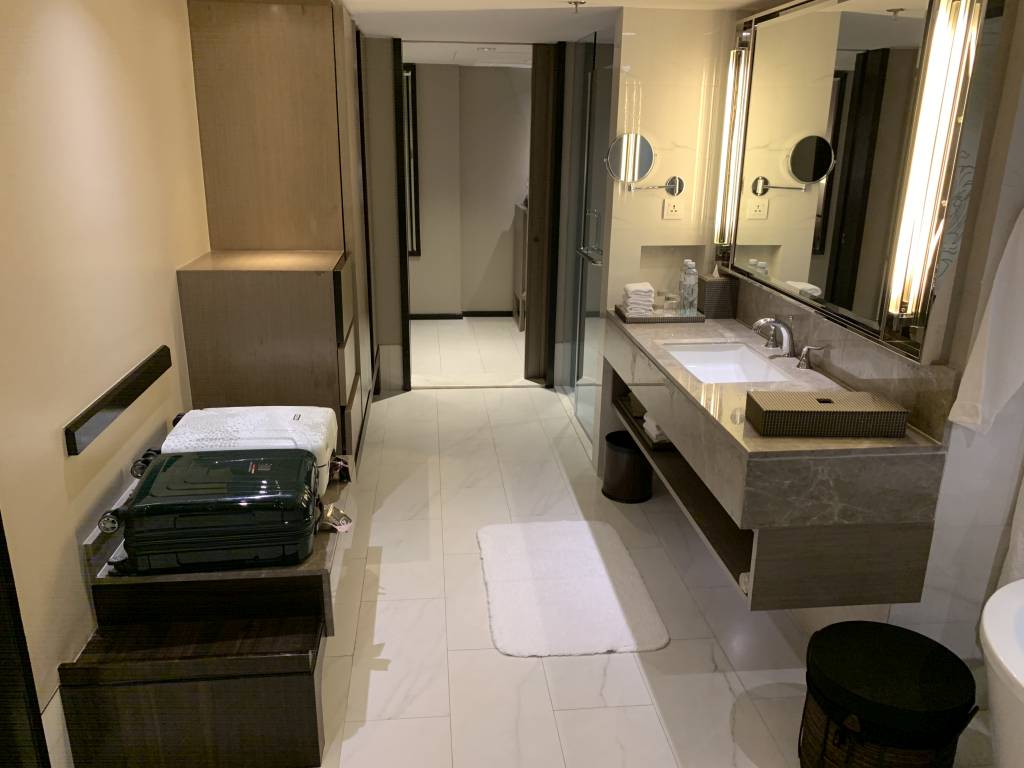 Alle M Club Suiten des Marriott Marquis Bangkok sind echte Suiten. Sie haben also ein Wohnzimmer und ein Schlafzimmer. Beide Räume sind miteinander verbunden. Alternativ kann man auch vom Flur durch das Bad ins Schlafzimmer gehen.