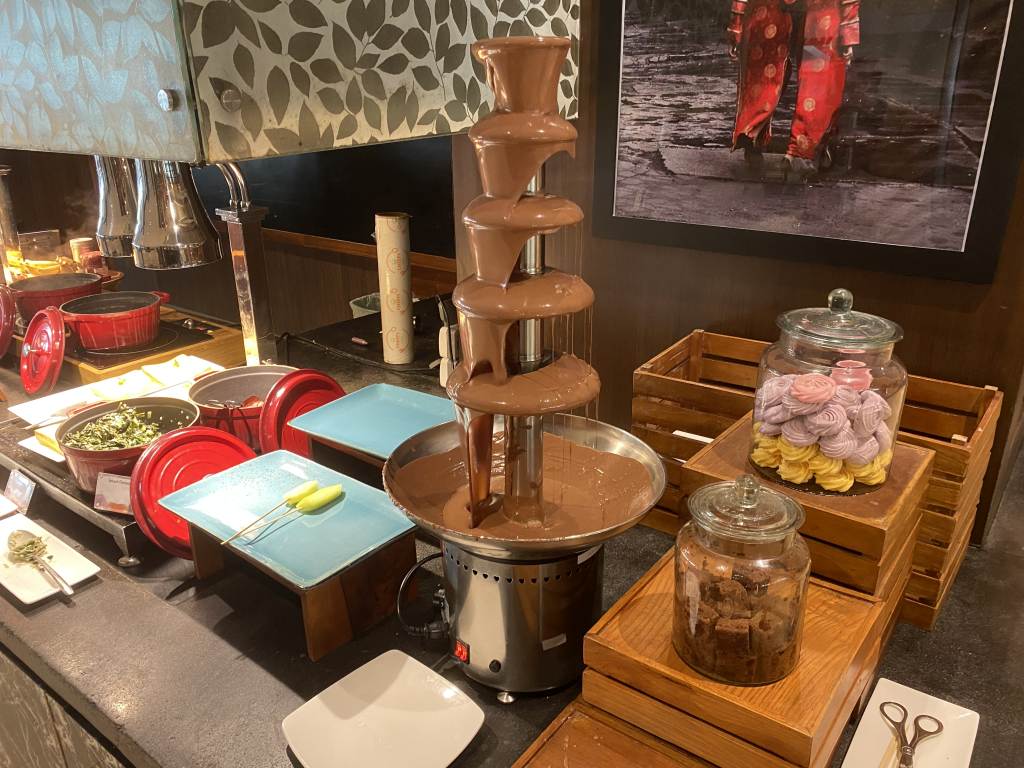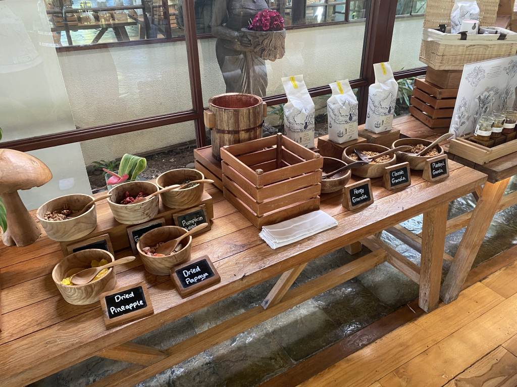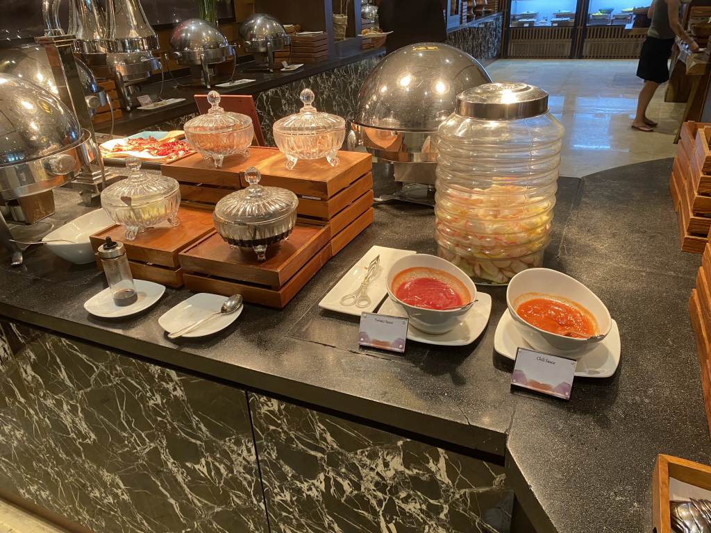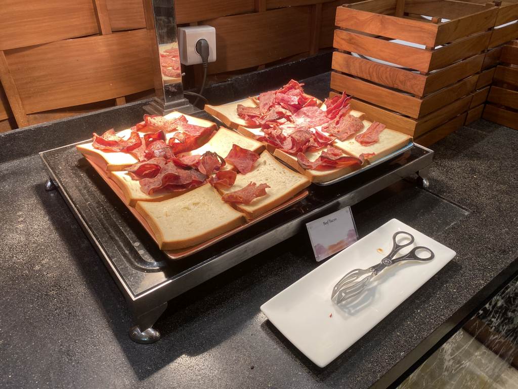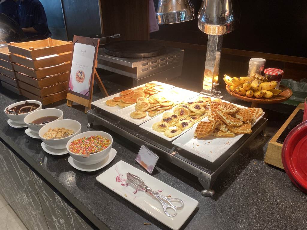 Hier wird das „Residential Breakfast“ serviert. Von einer Karte könnt Ihr Euch zum Beispiel Superfood-Bowls, frisches Brot mit hausgemachtem Nutella oder Eggs Benedict mit Chorizo bestellen. Weitere Speisen warten im Inneren des Sorrento-Restaurants in Büffet-Form auf Euch. Und jetzt mal ganz ehrlich: Wann hattet Ihr in Asien zuletzt Serrano-Schinken, Chorizo oder Manchego-Käse? Das hat mich begeistert.