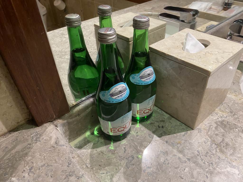 Wichtig für Reisen mit Kindern: Flaschen mit Trinkwasser waren mehr als genug vorhanden und über die gesamte Suite verteilt. Und auch Wasserkocher mit der Möglichkeit zur Zubereitung eines Tees oder Kaffees gab es.