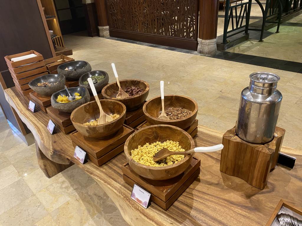 Auf Joghurt, Obst und Müsli müsst Ihr im Melia Bali beim Frühstück nicht verzichten.