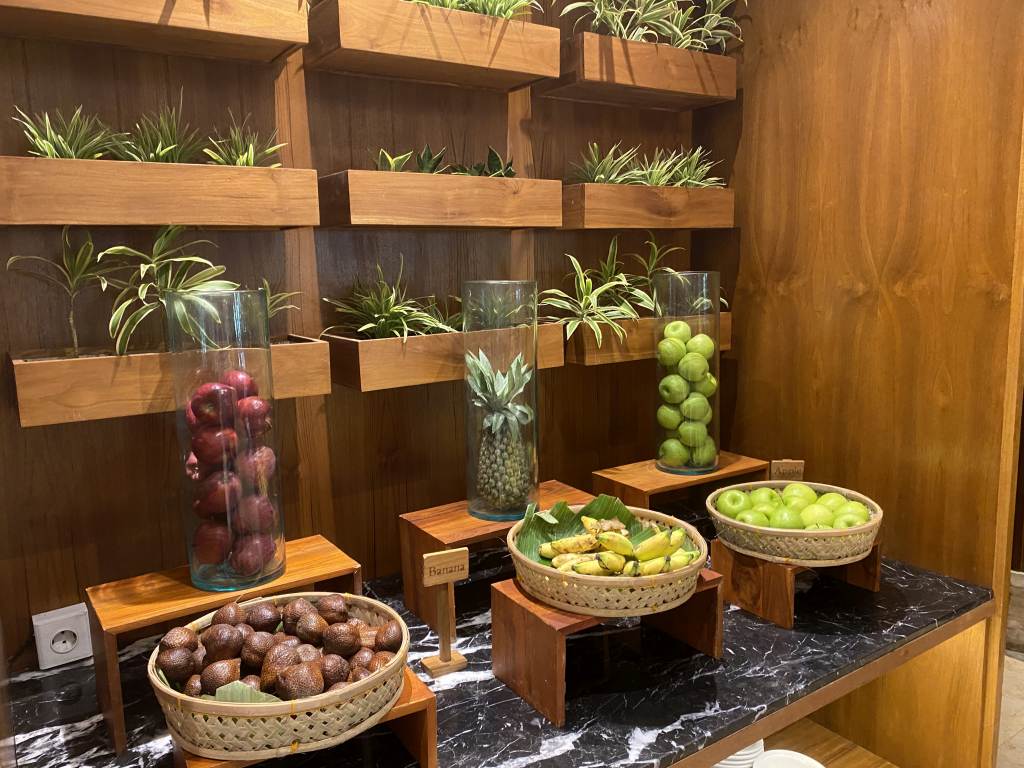 Das Frühstück für alle Gäste wird morgens bis 10:30 Uhr im El Patio Restaurant in Büffetform serviert. Dabei gibt es für die unterschiedlichen Herkunftsländer der Gäste extra Bereiche. Neben indonesischen Gerichten, gibt es auch eine japanische und indische Ecke.