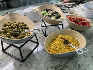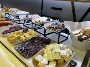 Das Mittagessen und Abendessen im Melia Benidorm wird ebenfalls in Büffetform dargereicht. Die spanischen Wurst- und Käsesorten werden mit Stolz präsentiert. Alles andere ist leider, so muss man es beschreiben, typisches All-Inclusive-Essen. Es gibt eine richtig große Auswahl und auch Fisch und Fleisch werden live gegrillt, aber es schmeckte mir wirklich nichts von den warmen Gerichten. Das hinderte aber andere Gäste nicht, sich die Teller bergeweise voll zu packen. Vielleicht bin ich da einfach etwas zu „picky“.