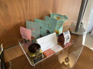 Wer das Zimmer betritt, kann von dem kleinen Flur direkt ins Badezimmer abbiegen. Das Badezimmer verfügte neben der Badewanne mit Duschfunktion auch über eine Toilette und ein Bidet. Das war zumindest ein Upgrade gegenüber unserem Hotel zuvor. Aber auch das Bad war eher praktisch und lud weniger zum Verweilen ein. Nur die Pflegeprodukten von Rituals wiesen etwas darauf hin, dass es sich hierbei um ein höherwertiges Zimmer handelt.
