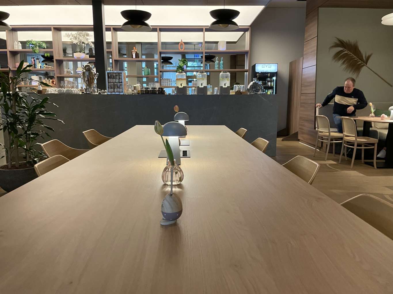 Die „The Level“-Lounge des Melia Düsseldorf befindet sich im Erdgeschoss direkt hinter den Fahrstühlen. Die Glastür öffnet sich uns, nachdem ich die spezielle Schlüsselkarte in den Kartenleser geschoben habe. Es war etwas ungewöhnlich, dass die eigentliche Zimmerkarte nicht mit dem Zugang kodiert wird, wie ich es von anderen Hotels kenne.