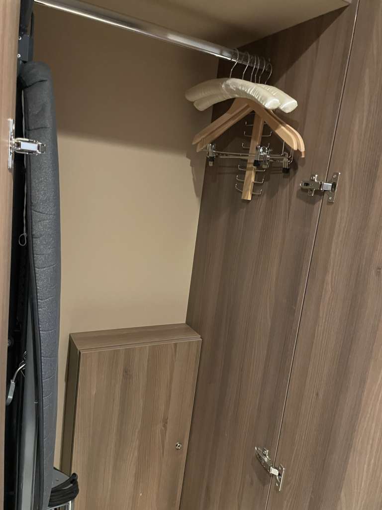 Dann kam in der Junior Suite erstmal nichts. Auf der gegenüberliegenden Seite des Raumes wirkten Sofa und Stuhl-Tisch-Kombination fast schon verloren. Auch einen kleinen begehbaren Kleiderschrank konnte die Junior Suite noch aufbieten.