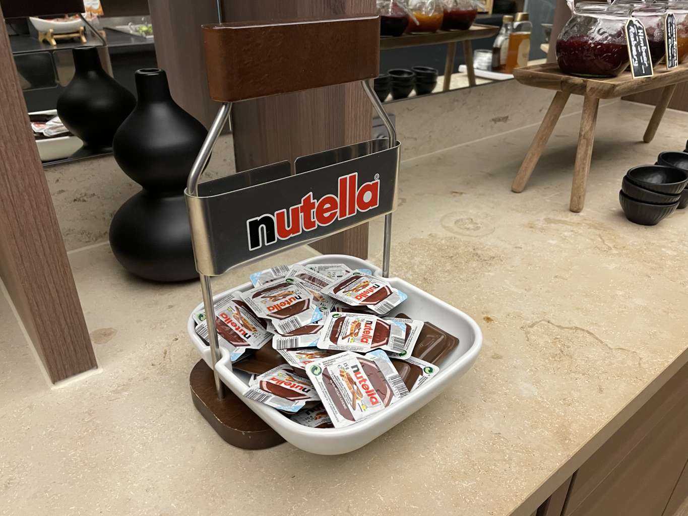 Das Frühstücksangebot erfüllte alle meine Erwartungen an diese Hotelkategorie. Frisches Obst und mehrere Salate hätte ich mir selbst zusammenstellen können und auch Backwaren vom Brot über Brötchen bis hin zu süßen Blätterteigwaren wurde einiges aufgefahrten. Auch Kuchen gehörte zum Angebot. Neben Wurst- und Käseaufschnitt stand auch eine Auswahl an Marmeladen und ein Nutella-Spender bereit (zum Glück waren die Kinder in der Lounge!). Jede Menge Cerealien und Müslis rundeten die Auswahl am Büfett genauso ab, wie einige warme Optionen.