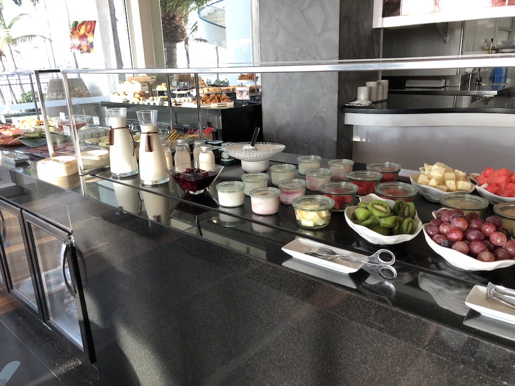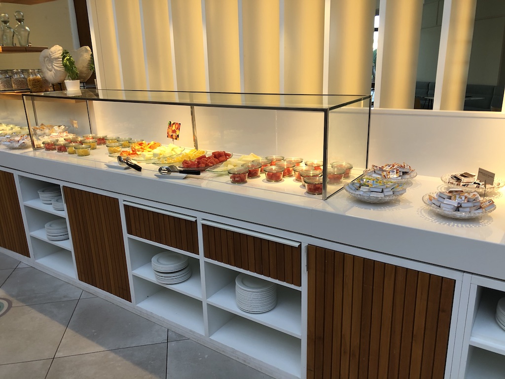 In der Lounge selbst könnte man zu der Zeit den schönen Sonnenuntergang genießen, man versucht aber offensichtlich Personal einzusparen. Immerhin wird die Lounge wieder für das Frühstück genutzt, welches etwas exklusiver als im Hauptrestaurant ist. Die Präsentation war sehr gelungen, es gab auch einige a la Carte Gerichte.