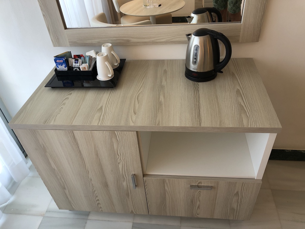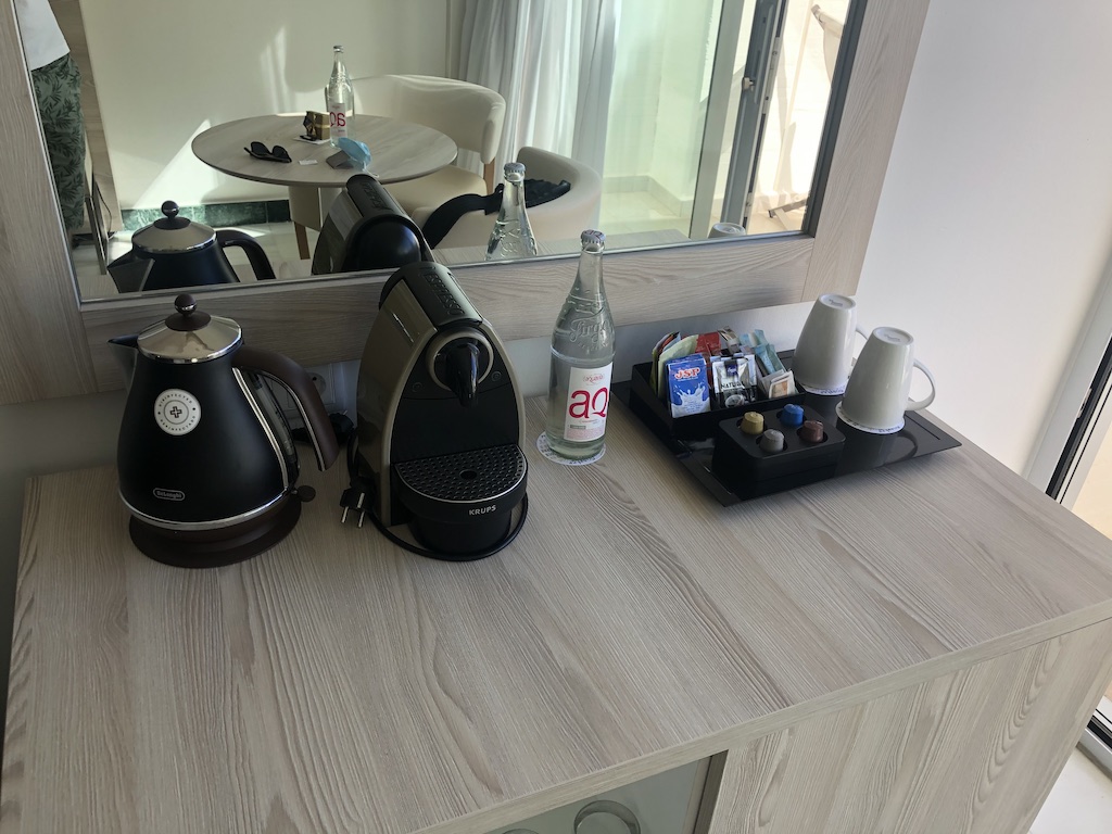Inzwischen wurde uns der Aufpreis für ein Level-Zimmer genannt, dieser betrug normalerweise 65€/Nacht. Da wir bereits ein Zimmer mit Meerblick erhalten haben wurde uns ein Wechsel für 45€/Nacht offeriert. Ich zeigte an der Rezeption die App mit dem aktuellen Sale vor, wo der Unterschied nur etwa 20€ betrug, nach einigem hin&her mit der Front Office Managerin haben wir uns auf 30€ geeinigt.