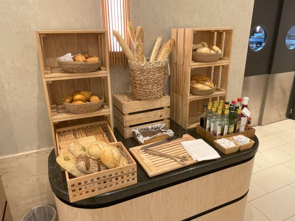 Kaffeespezialitäten kann man sich, wie in Hotels doch sehr üblich, selbst aus dem Automaten ziehen, und zusätzlich gibt es auch noch diverse Säfte. Beliebt dürfte vor allem auch die Gelegenheit sein, den Tag mit einem Gläschen Cava zu starten.