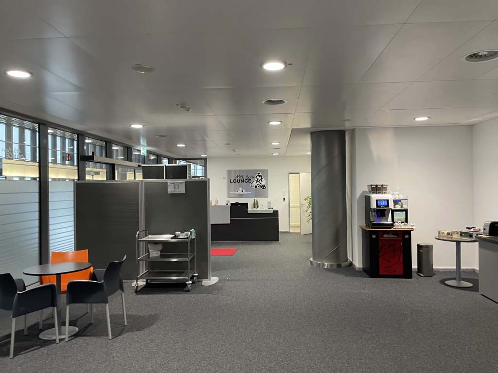 Wenn Ihr durch die automatische Schiebetür die Lounge betretet, findet Ihr direkt linker Hand den Empfang. Da die Lounge mit wenig Personal besetzt ist, kann es durchaus sein, dass die Rezeption gerade nicht besetzt ist, weil die Mitarbeiter in den hinteren Räumen gerade andere Dinge erledigen.