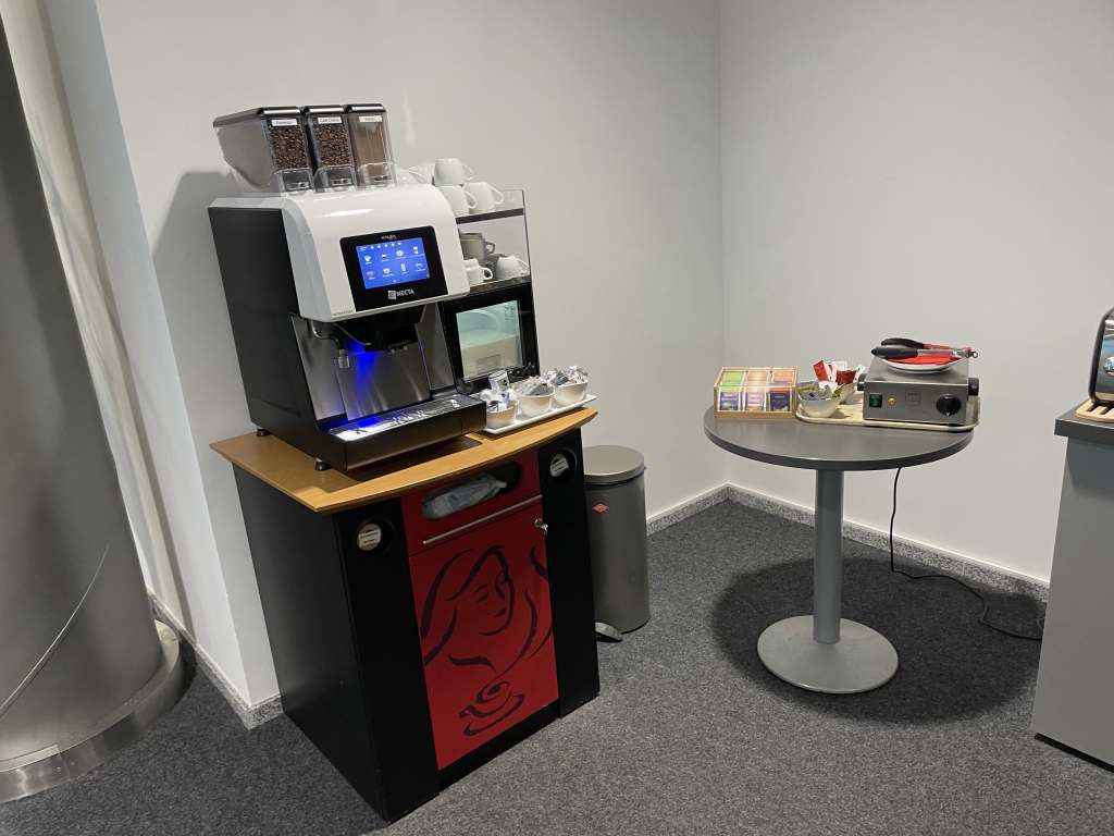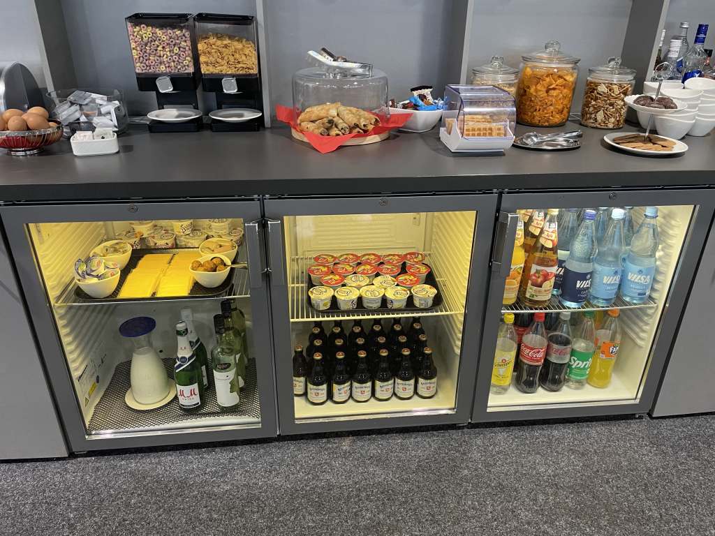 Die Softdrinks könnt Ihr Euch aus großen Flaschen einschenken. Da habe ich sogar Softdrink-Dispenser lieber. Ein Kaffeevollautomat steht ebenfalls zur Verfügung, wie ein paar Teesorten.