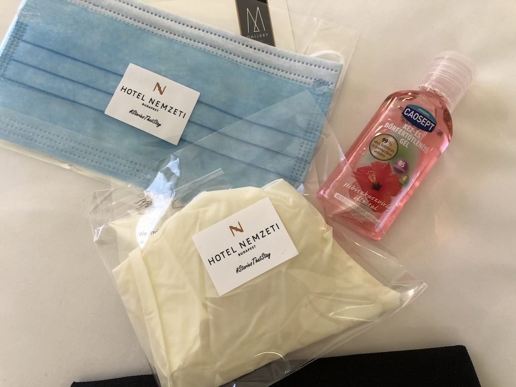 Auf dem Schreibtisch lag ein persönliches, mit der Hand gefertigtes Schreiben zur Begrüßung und auf dem Bett ein Hygiene-Kit. Darin enthalten: Gesichtsmaske, Einweghandschuhe und Desinfektionsmittel.