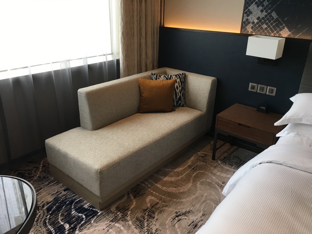 Wir kamen etwa um 14 Uhr im Hotel an. Trotz einer kleinen Schlange an der Rezeption wurde sich nach wenigen Minuten um uns gekümmert. Der Check-In Vorgang war zügig und freundlich, uns wurde für die Loyalität im Hilton Programm gedankt und wir bekamen unsere Zimmerkarten. Die Lobby ist sehr großzügig gestaltet. Sie hat hohe Decken, viele Fenster und einige verschiedene Sitzmöglichkeiten. Ich fand sie allerdings auch etwas unübersichtlich, da überall Gepäck herumstand.