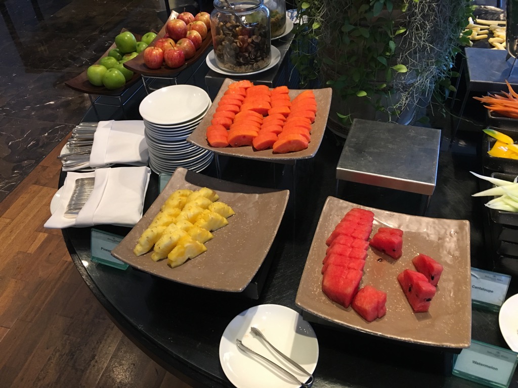 Das Frühstück haben wir außer an einem Tag immer in der Executive Lounge eingenommen, da es in den Lounges eigentlich in jedem Hotel etwas ruhiger und entspannter zugeht. Dennoch wollten wir uns das Buffet unten anschauen, da es an den Buffets in der Regel nochmal eine größere Auswahl gibt.