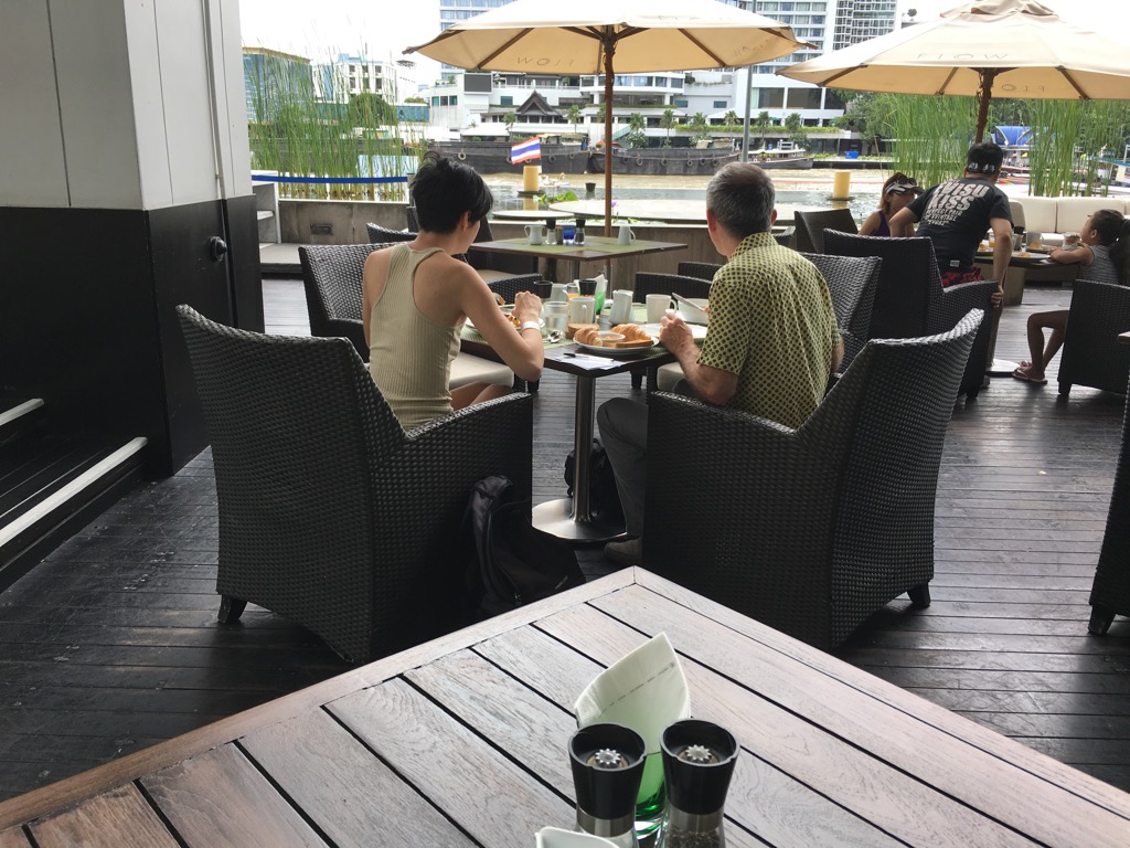 Der Fairness halber muss man dazu sagen, dass wir zur Frühstücks-Rush Hour gefrühstückt haben (etwa 8:30 Uhr), dennoch war auf den ersten Blick kein freier Tisch zu finden. Auf der Terrasse mit Blick auf den Fluss bekamen wir dann doch noch einen Tisch. Wir wurden freundlich dort hin begleitet und nach unseren Heißgetränkewünschen gefragt.