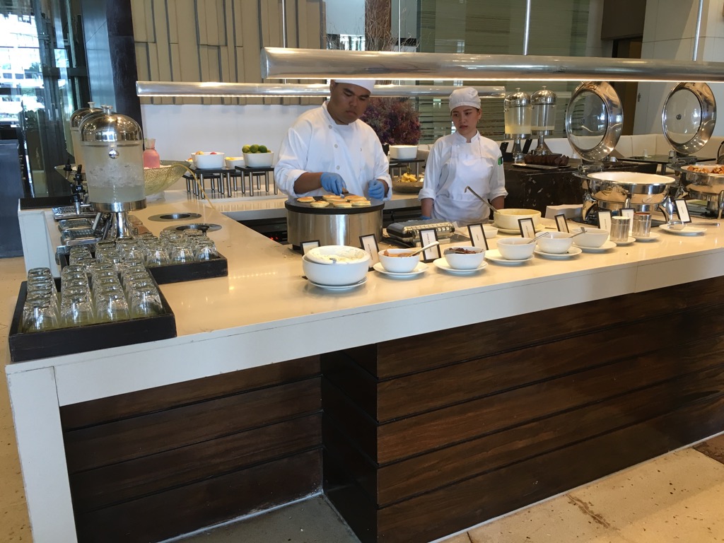Das Buffet bot eine beachtliche Auswahl an Speisen. Neben vielen asiatischen und westlichen Optionen, sowie viel frischem Obst gab es auch eine Omelette und eine Pancake Station, an der man sich Speisen frisch zubereiten lassen konnte.