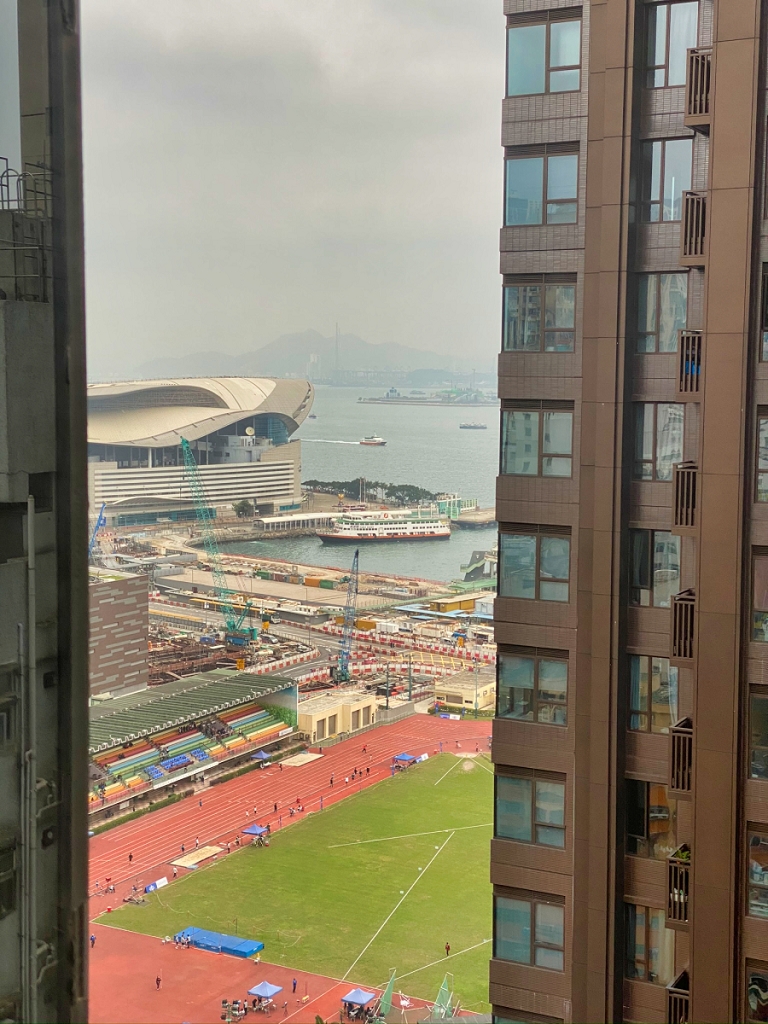 Der Zusatz „Premier“ bestimmt dann noch den Ausblick. Premier Zimmer bieten dann einen fast direkten Blick auf das Convention Center und den Hafen in Richtung Kowloon.