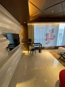 Bei der Hotelbuchung schwankte ich zwischen dem neuen Marriott Ocean Park und diesem Hotel. Letztendlich entschied ich mich für das Mira Moon, da ich zum einen das Konzept des Hotels mit dem Hasen auf dem Mond und zum anderen die Lage mochte. Das Marriott hatte zu der Zeit anscheinend kleinere Probleme mit den Leitungsinstallationen, so dass es dort wohl gelegentlich wie im Klärwerk gerochen haben soll.