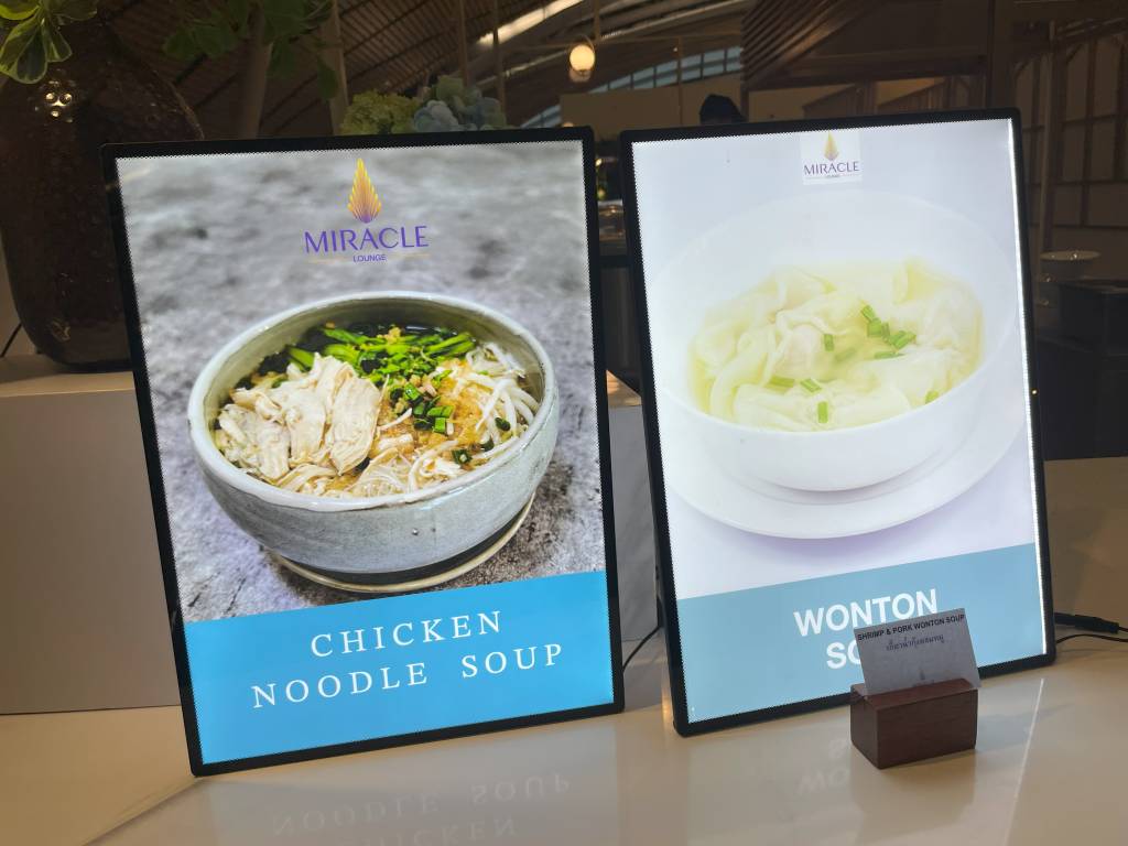 Die Auswahl an Speisen war sowohl in der Miracle Business als auch First Lounge überraschend gut. Die Angebote in beiden Lounges unterschieden sich nahezu nicht. Ein Zeuge davon war die gemeinsame Nudelbar, an der wir uns mit Hühnernudelsuppe und Wonton-Suppe eindecken konnten.