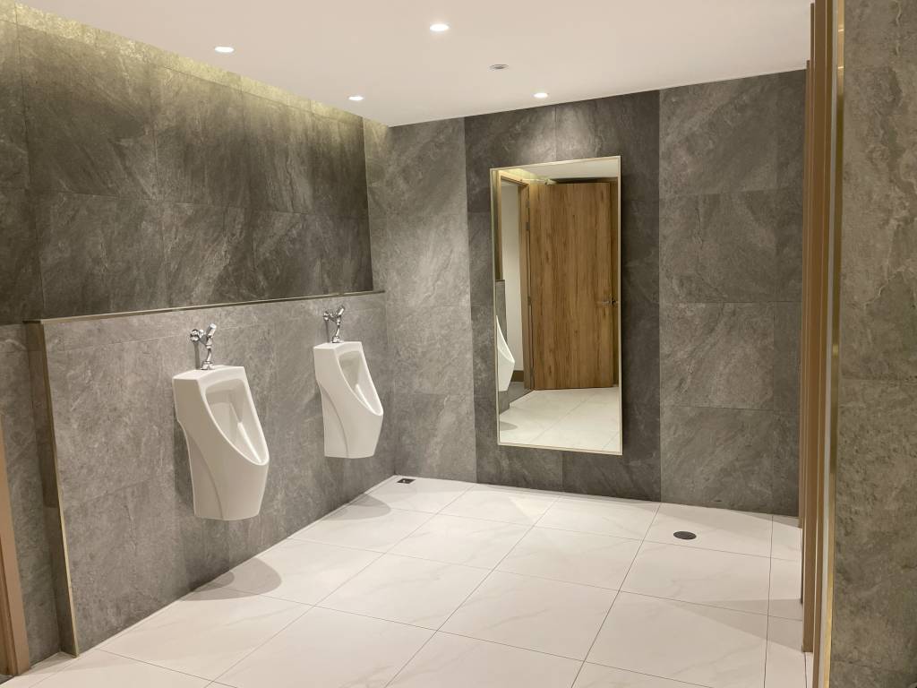 Bevor man jedoch den Hauptteil der Lounge erreicht, bot sich uns noch die Möglichkeit links in Richtung Toiletten und Duschen abzubiegen. Das elegante Marmordesign der Waschräume und Nasszellen könnte mit vielen First Class Lounges weltweit mithalten und war jederzeit pikfein sauber.