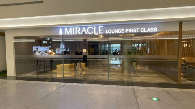 Wir haben direkt die zentrale Rolltreppe nach oben genommen und uns dann in Richtung des linken Teils der Verteilebene orientiert. Zunächst stößt man dabei auf die Miracle First Class Lounge linker Hand und noch etwas weiter die Miracle Business Lounge direkt vor Kopf.