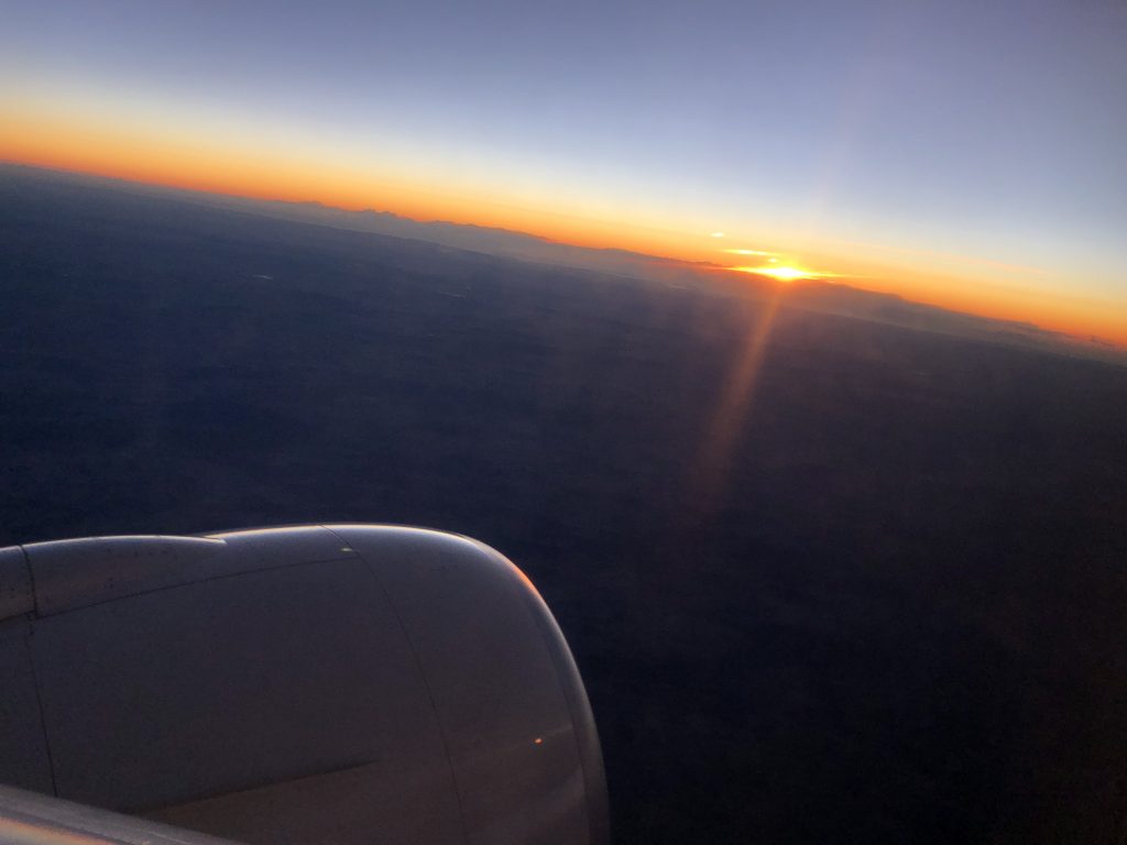 Die Gespräche mit meinem Sitznachbarn und der Flugbegleiterin machten den Flug sehr kurzweilig. Nach einem Film und etwas Schlaf ging draußen schon die Sonne auf und es waren lediglich noch eineinhalb Stunden bis zur Landung. Ich bestellte ein Steak-Sandwich und etwas Obst. Es schmeckte entgegen meiner Erwartung gar nicht fad oder trocken, ganz im Gegenteil.