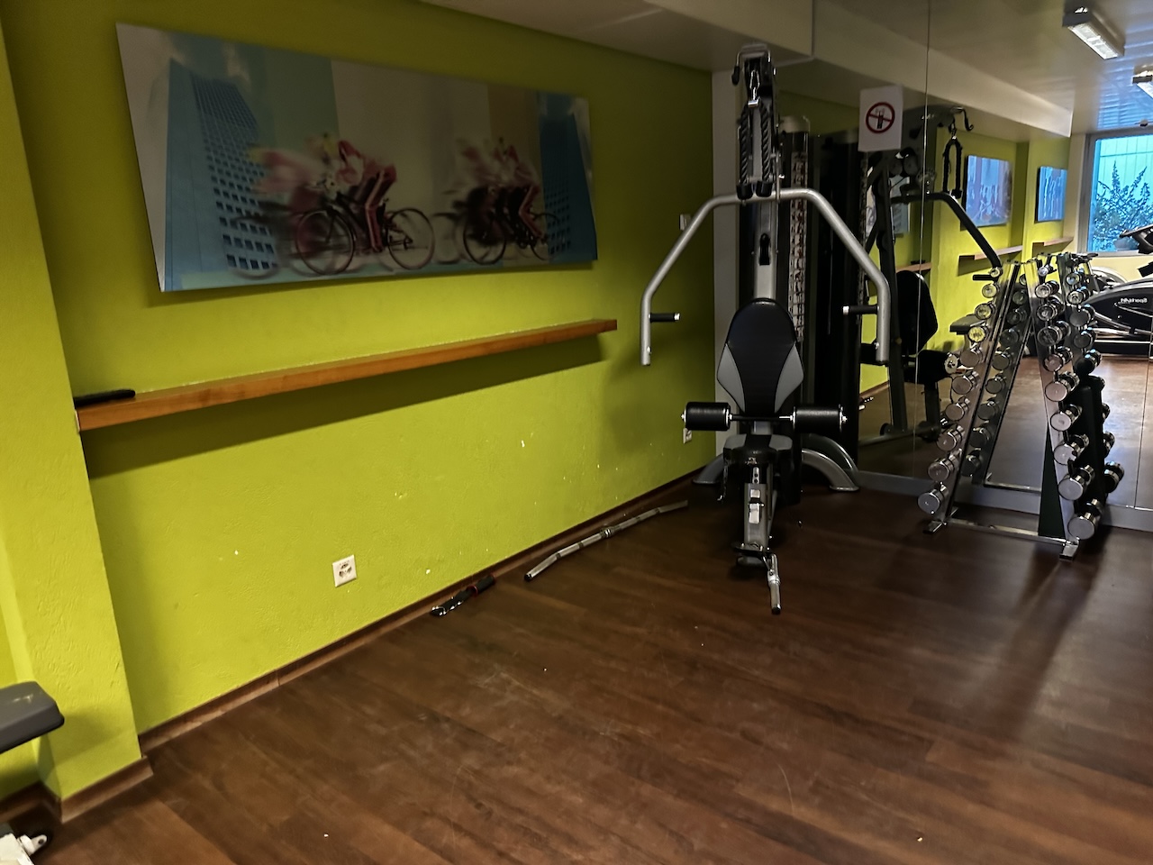 Im Sommer kann man den Außenbereich nutzen, wer Zeit zum Sport hat kann sich auf die Suche nach dem Gym machen. Dieses ist etwas versteckt, bietet einige Cardiomaschinen, Gewichte sowie einen Multifunktionstrainer.