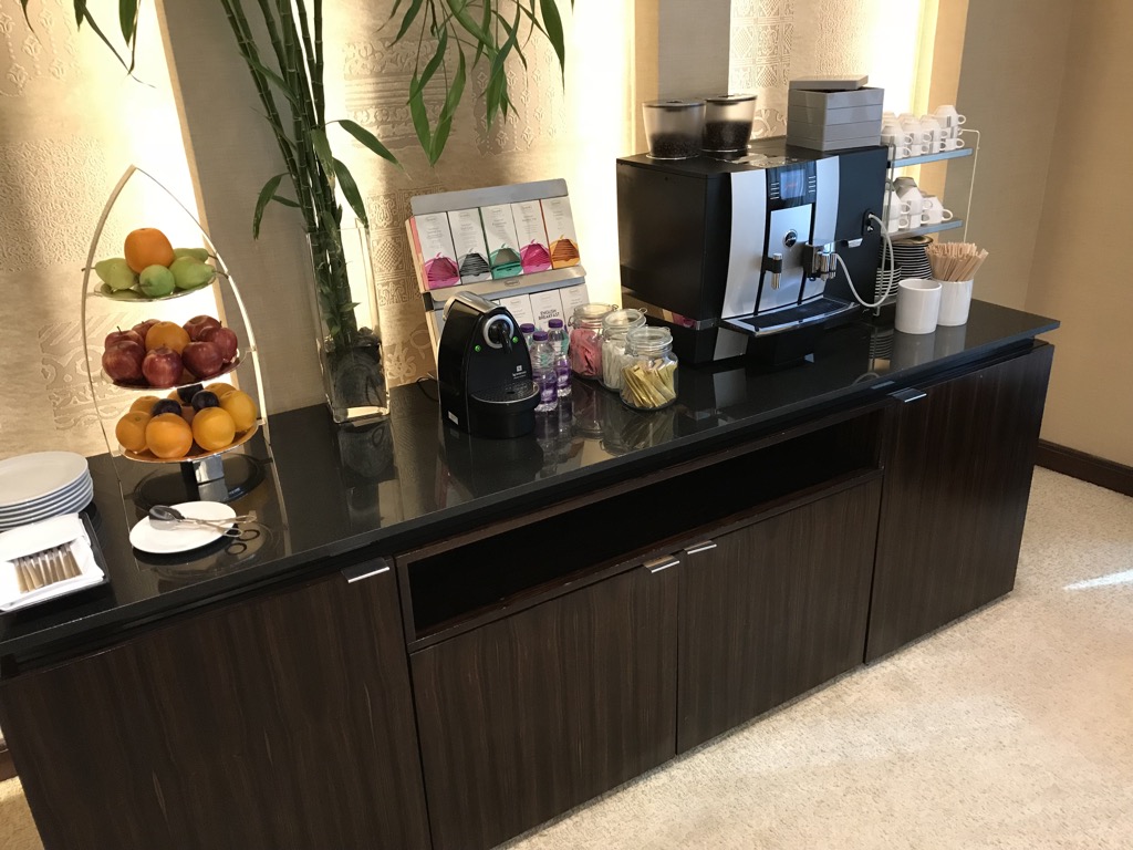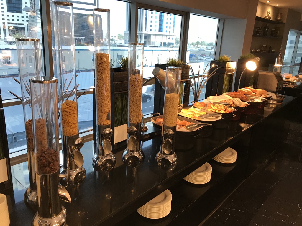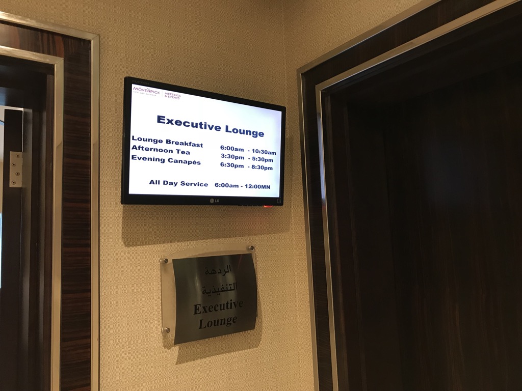 Das Mövenpick West Bay Doha verfügte auch noch über eine Executive Lounge, vor welcher ein Schild stand wann welches Angebot vorzufinden ist. Durch unser Zimmer hätten wir Zugang gehabt, aber leider haben wir keines der Angebote zu den angegebenen Zeiten vorgefunden.