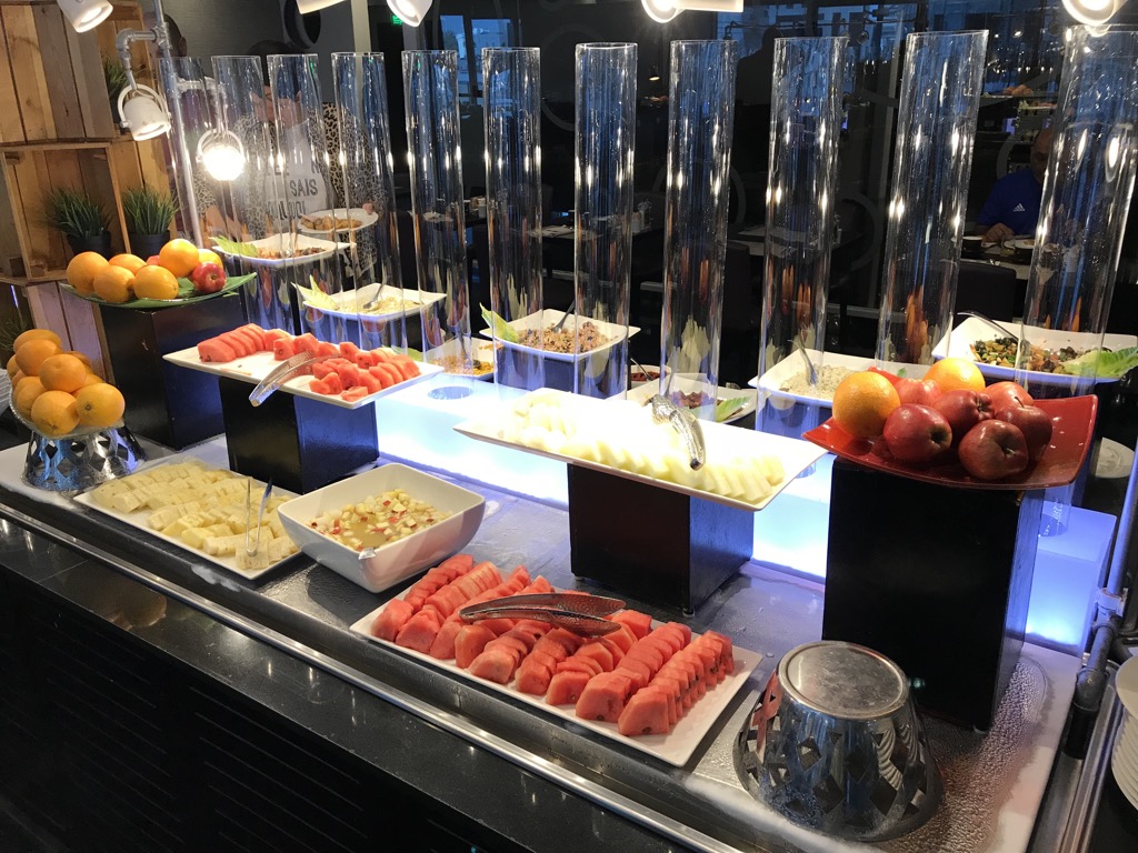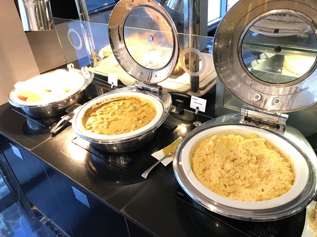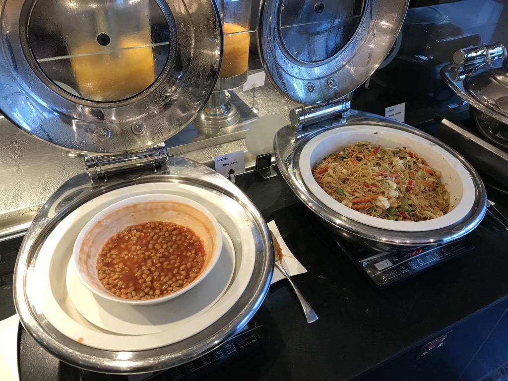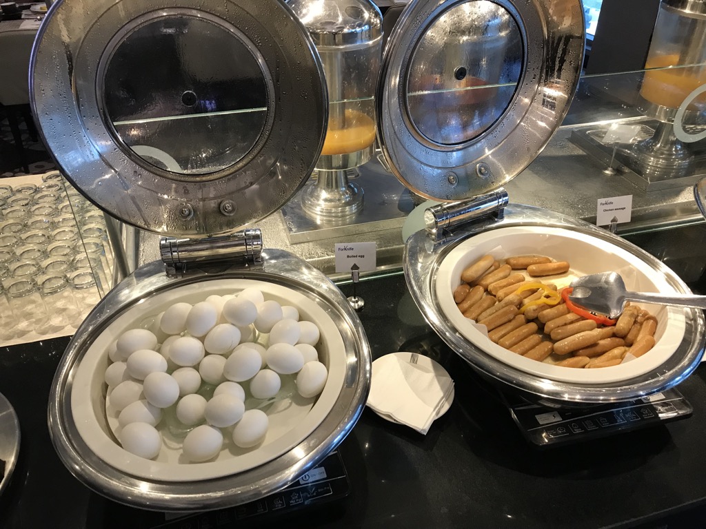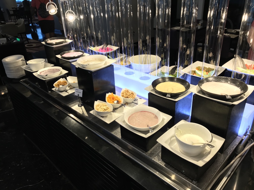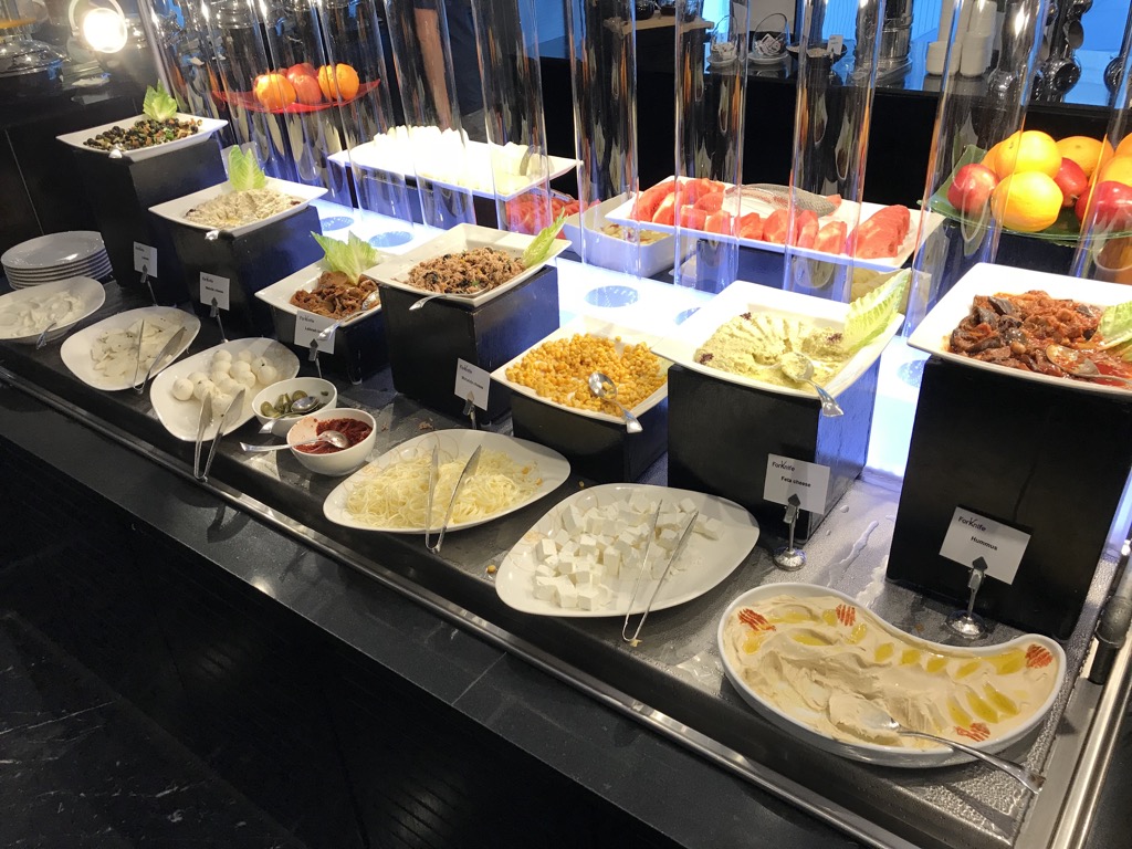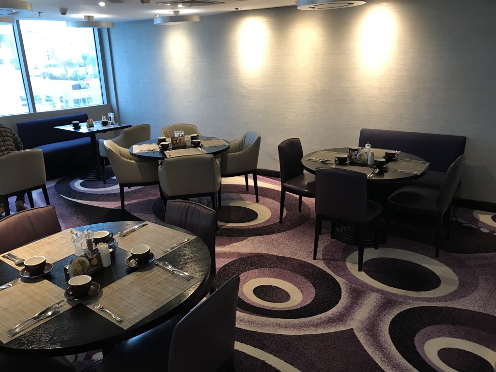 Das Frühstück konnten wir im All Day Dining Restaurant in Buffetform einnehmen. Der Raum war in unterschiedliche Teile unterteilt, welche mit verschiedenen Sitzmöbeln ausgestattet waren. Direkt nach unserer Ankunft wurden wir mit Kaffee und Tee versorgt und bekamen auf Nachfrage auch noch große Gläser mit Mineralwasser.