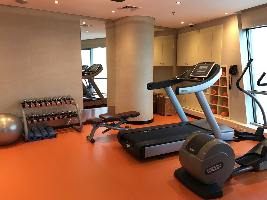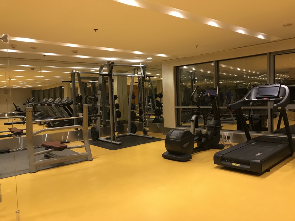 Auf dem selben Stockwerk befand sich auch noch das gemischte Gym, welches erstaunlich groß und gut ausgestattet war. Neben vielen verschiedenen Cardiogeräten war auch noch eine ordentliche Auswahl an Kraftgeräten und freien Gewichten, sowie einer Multipresse vorhanden. Hier hat uns einzig und alleine der Wasserspender etwas gestört. In einem Gym ständig sein Training unterbrechen zu müssen um etwas zu trinken finden wir anstrengend. Hier bevorzugen wir definitiv kleine Flaschen. Bei unserem zweiten Training haben wir einfach leere Flaschen aus dem Zimmer mitgenommen und dort befüllt.