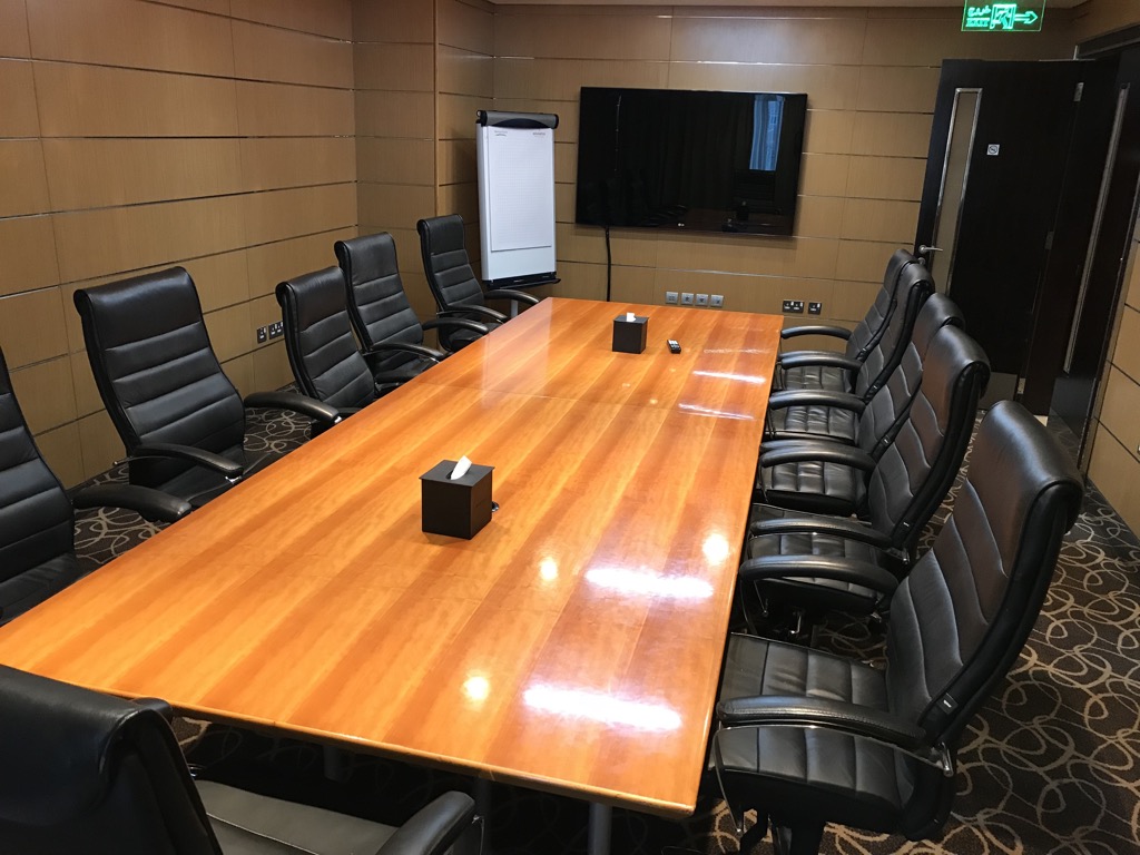 Vor der Lounge war noch ein Aufenthaltsbereich, der vor allem zur Bewirtung der Konferenzraumnutzer diente. Das Hotel verfügte über mehrere verschieden große Konferenzräume. Da gerade eine Veranstaltung stattgefunden hat, konnten wir nur einen kleinen Konferenzraum besichtigen.