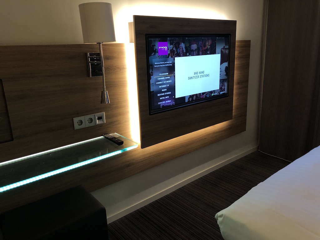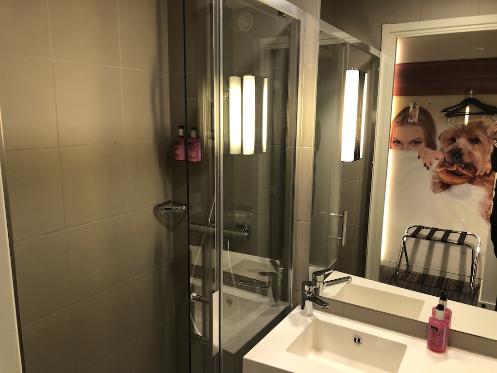 In den Zimmern sah es in etwa genauso aus wie in allen anderen Moxys, die ich bisher kenne. Bett, Sessel, Fernseher, kleine Ablage, kleines Bad. Telefon und Schrank gibt es nicht.