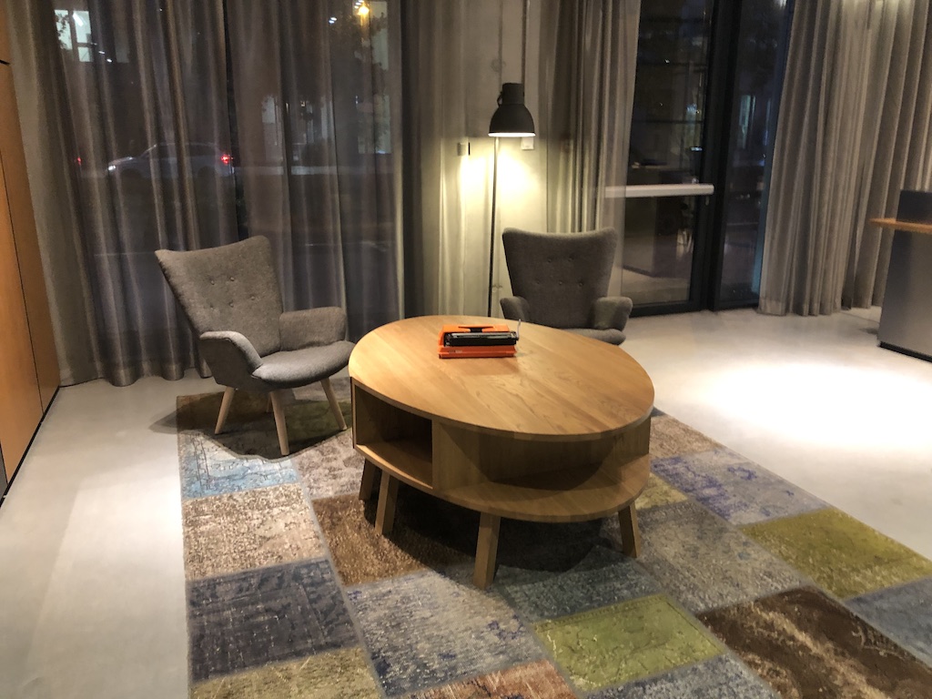 Die Lobby ist voller verschiedener Sitzmöglichkeiten, es läuft Musik und geht auch mal turbulent zu. Eingecheckt wird am Tresen, dies ist gleichzeitig die Bar.