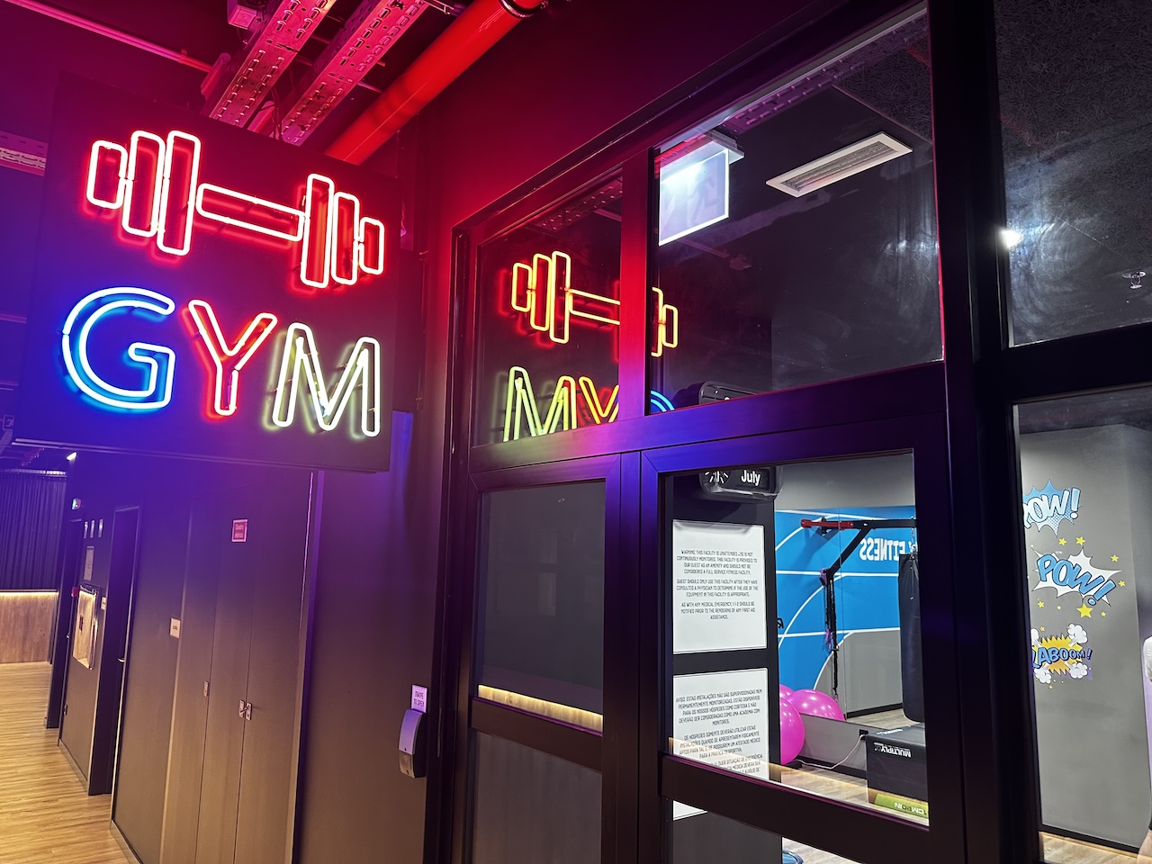 Im ersten Stock steht ein Fitnessstudio bereit. Das Gym ist nicht sonderlich groß, darin sind ein paar Hanteln, Geräte und Cardiomaschinen, das Studio hat rund um die Uhr geöffnet.