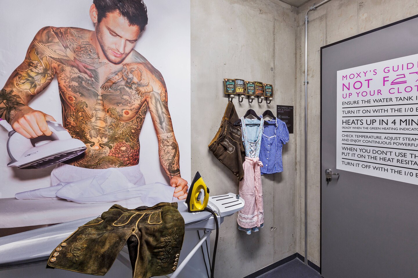 Auf Bügeleisen in den Zimmern wird übrigens verzichtet, dafür gibt es allerdings einen eigenen Raum. Über einen Gym verfügt das Moxy München-Ost leider nicht.