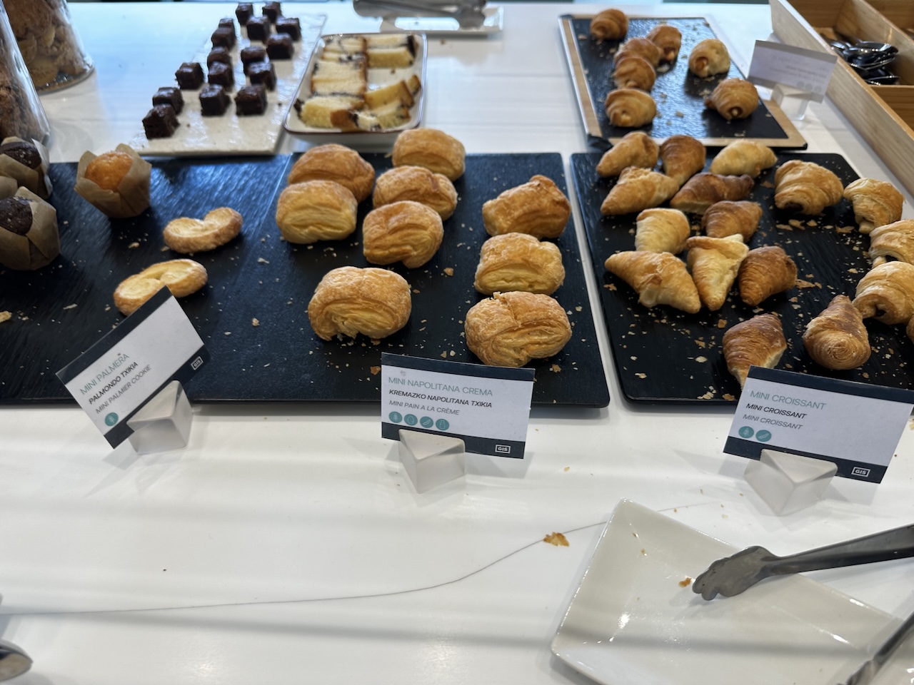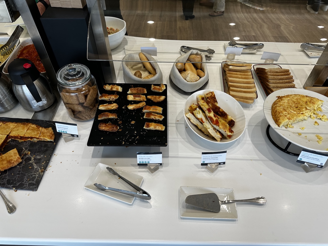 Ich war zur Mittagszeit da, hätte aber noch etwas zum frühstücken gefunden. Gebäck, Brot und Kuchen gibt es hier – so wie in den meisten Lounges – über den ganzen Tag.